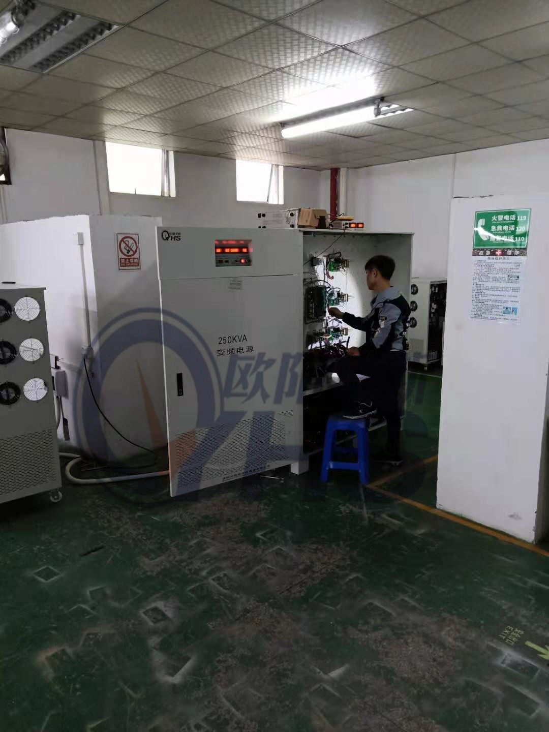 欧阳华斯三相250KVA变频电源正在调试中,准备出货