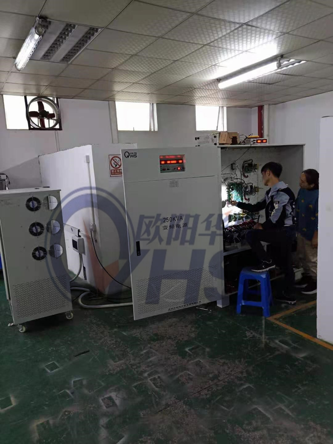 欧阳华斯三相250KVA变频电源正在调试中,准备出货。
