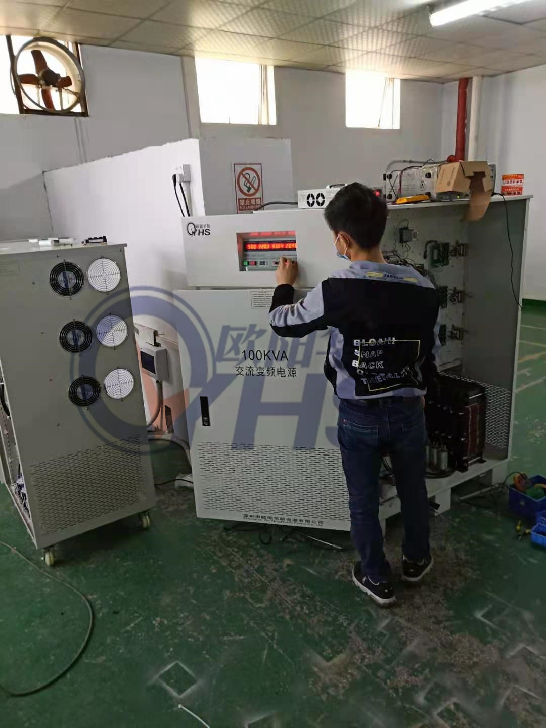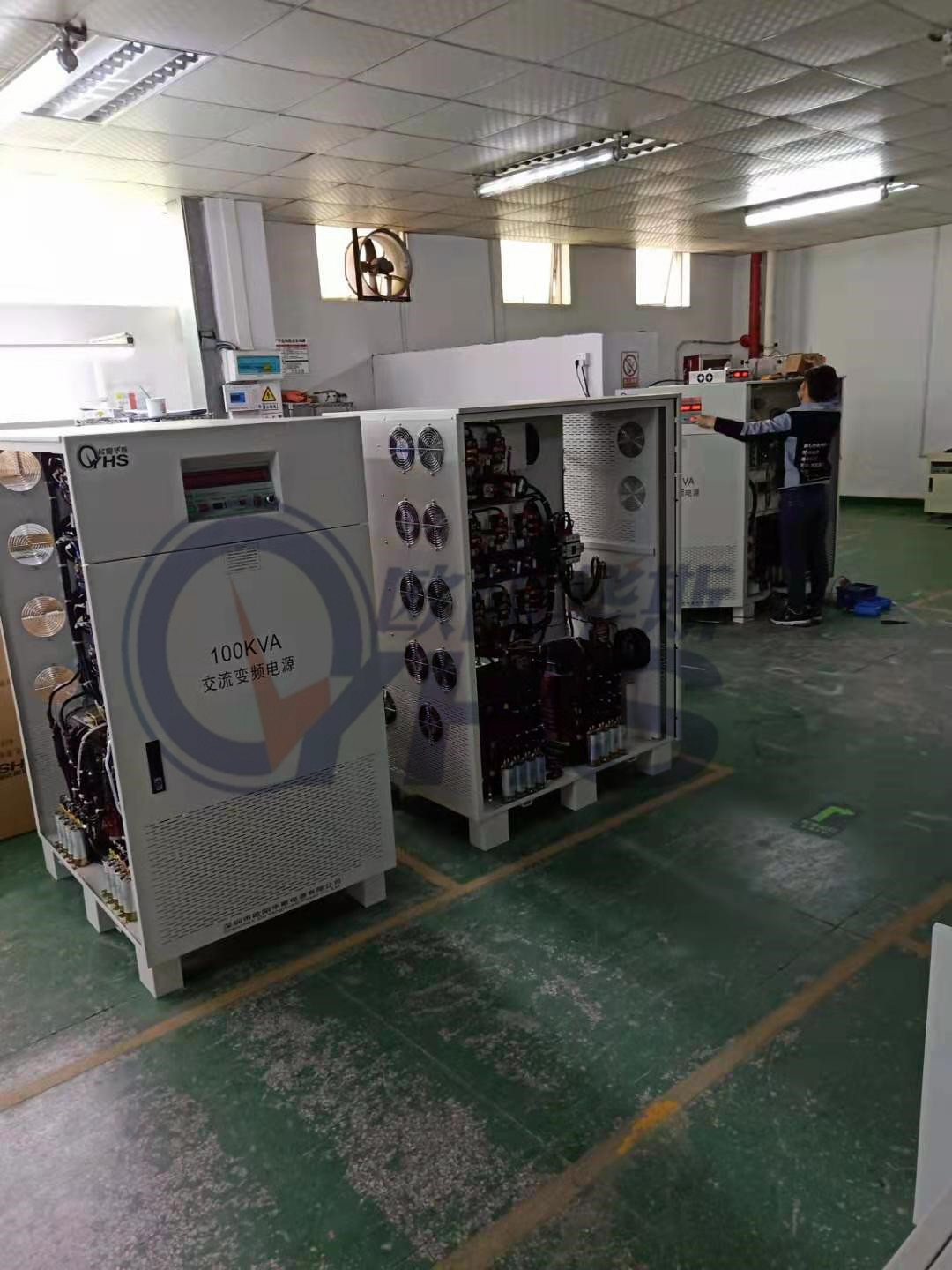 欧阳华斯三相100KVA变频电源出货美国,输入480V/60HZ,输出三相380V/50HZ。