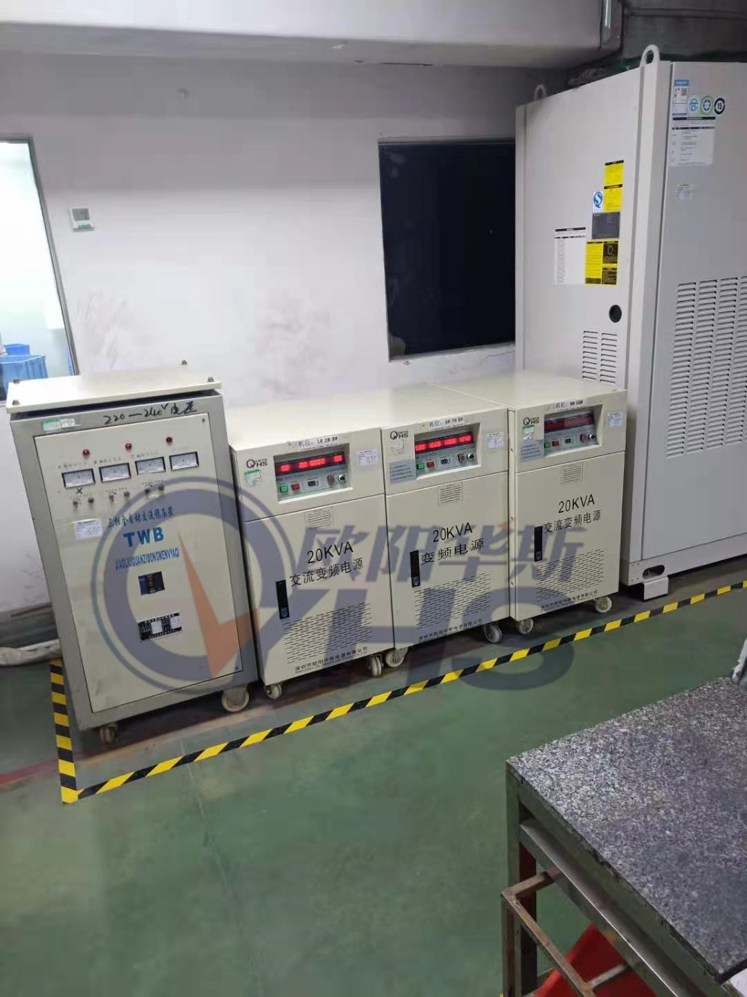欧阳华斯20KVA变频电源出货东莞东莞石排,测试PTC产品,输出220V 50HZ,稳压稳频。
