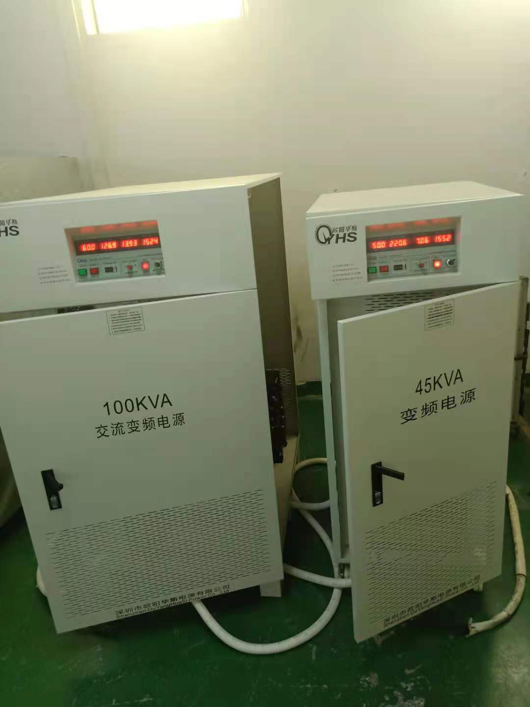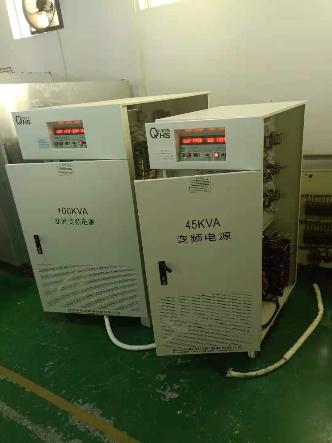 欧阳华斯三相45KVA变频电源出货菲律宾,配中国国内产品使用。输出三相220V 60HZ,输出三相380V 50HZ。