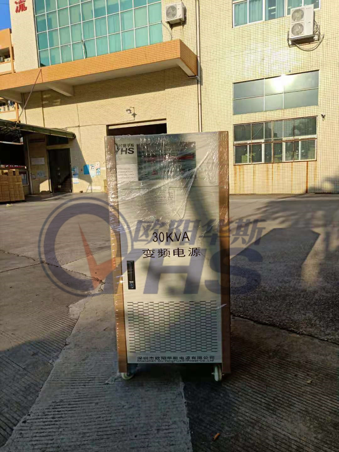欧阳华斯30KVA变频电源出货深圳沙井客户现场,测试110V 60HZ出口产品。