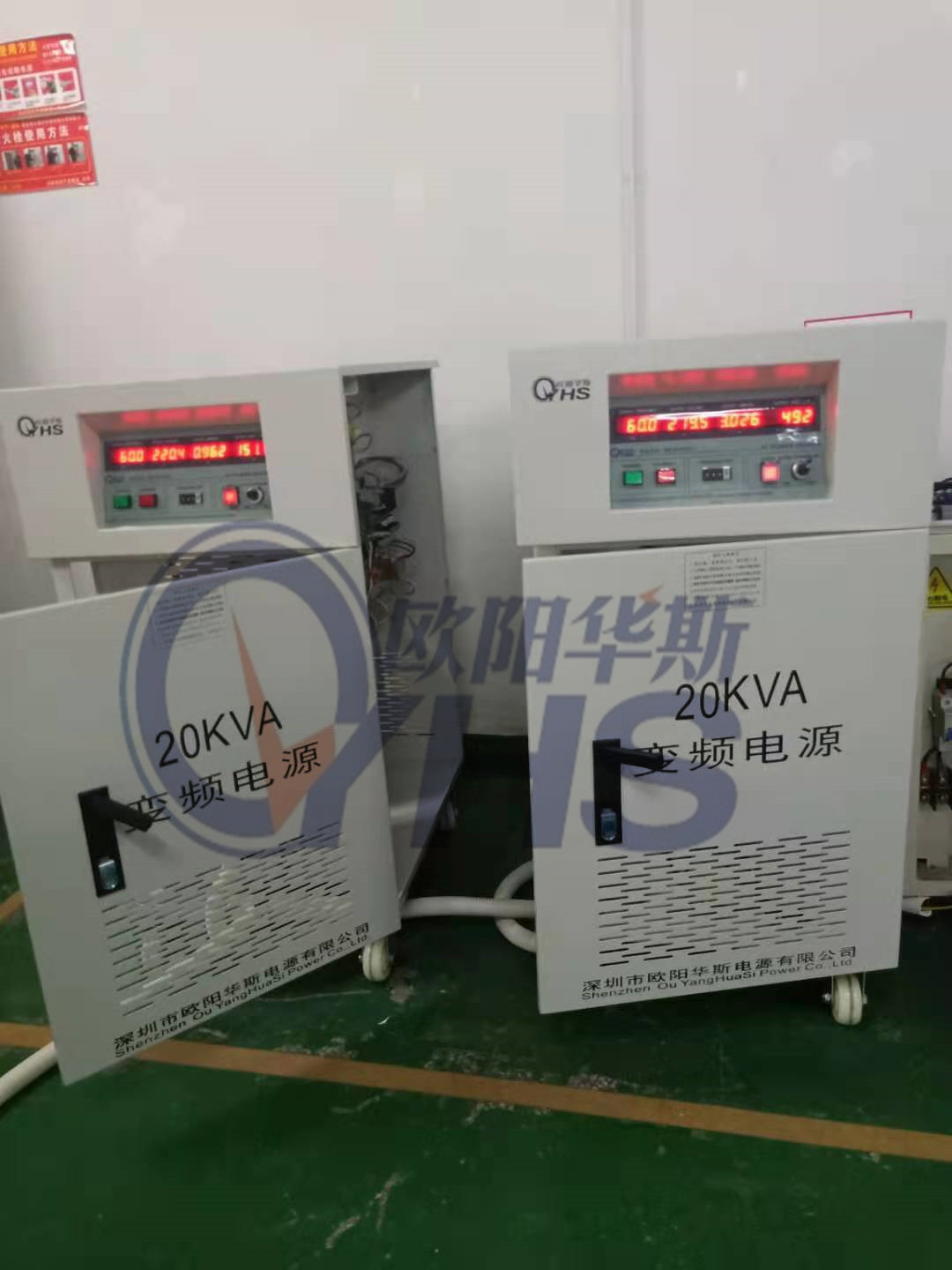 欧阳华斯二台20KVA变频电源出货上海,输出电压0-500V连续可调,频率50HZ,60HZ可调。