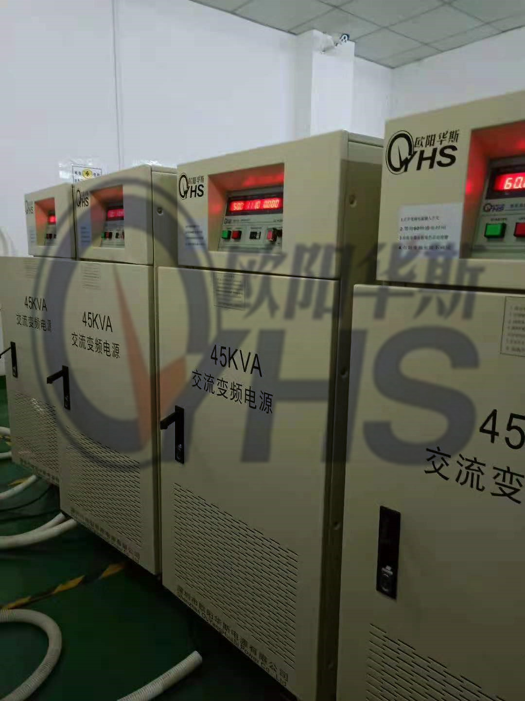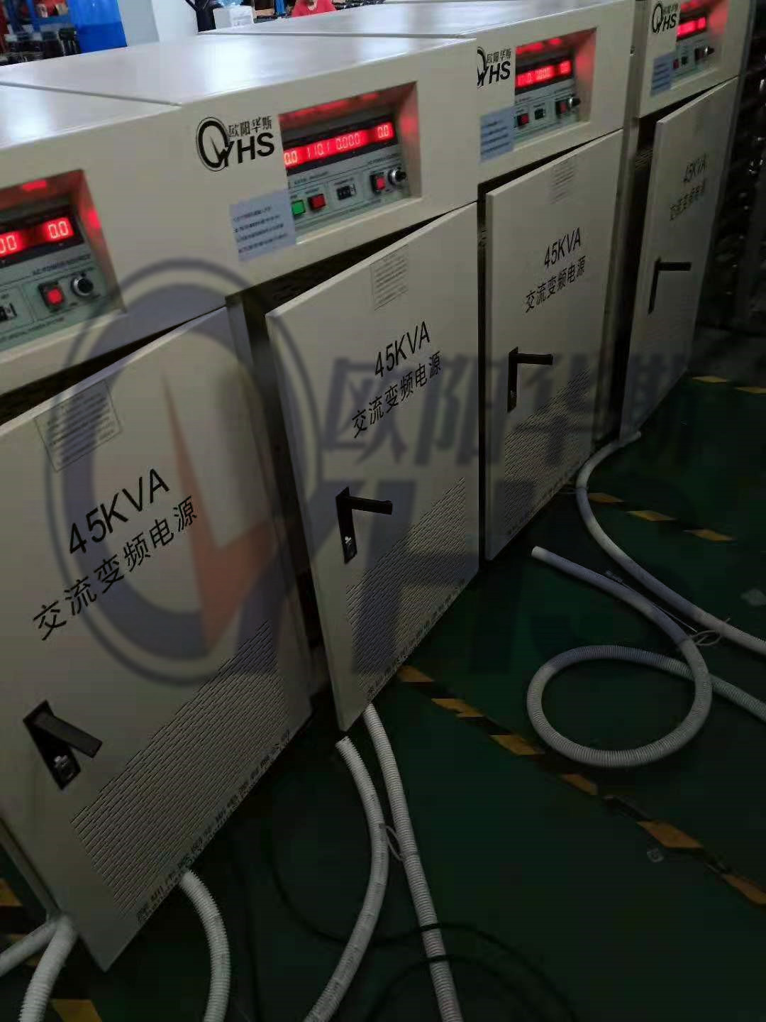 出货三进单出45KVA变频电源,45KW可调频可调压电源,380V/50HZ输入,110V/60HZ输出|欧阳华斯品牌,型号OYHS-98845,输出电压0-300V连续可调,输出频率40~499.9HZ连续可调。