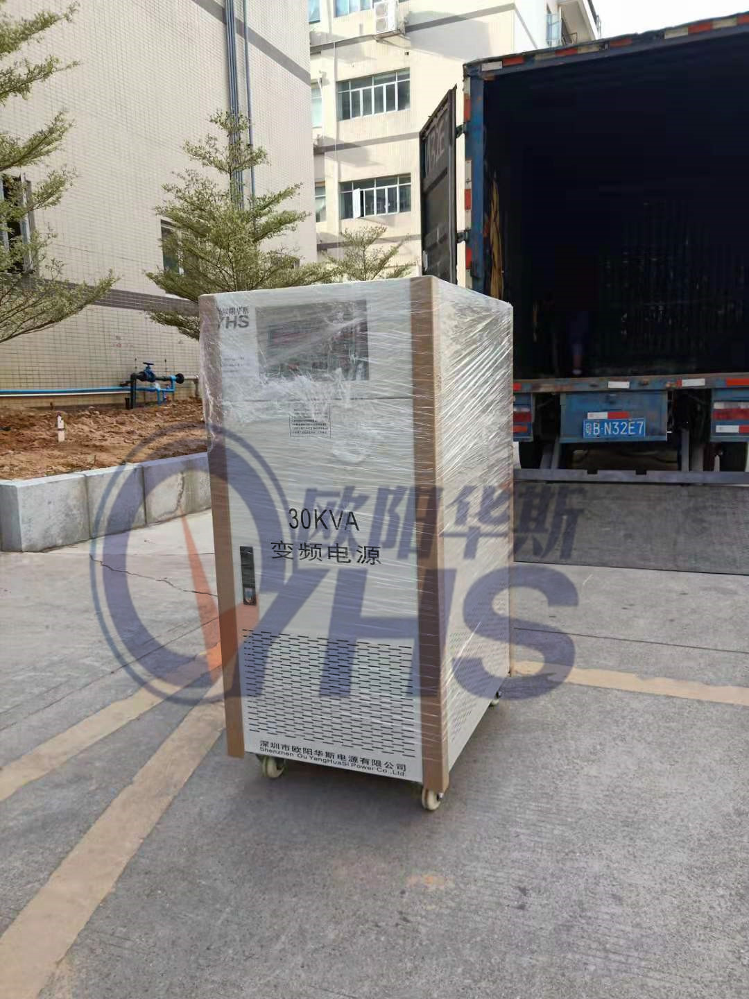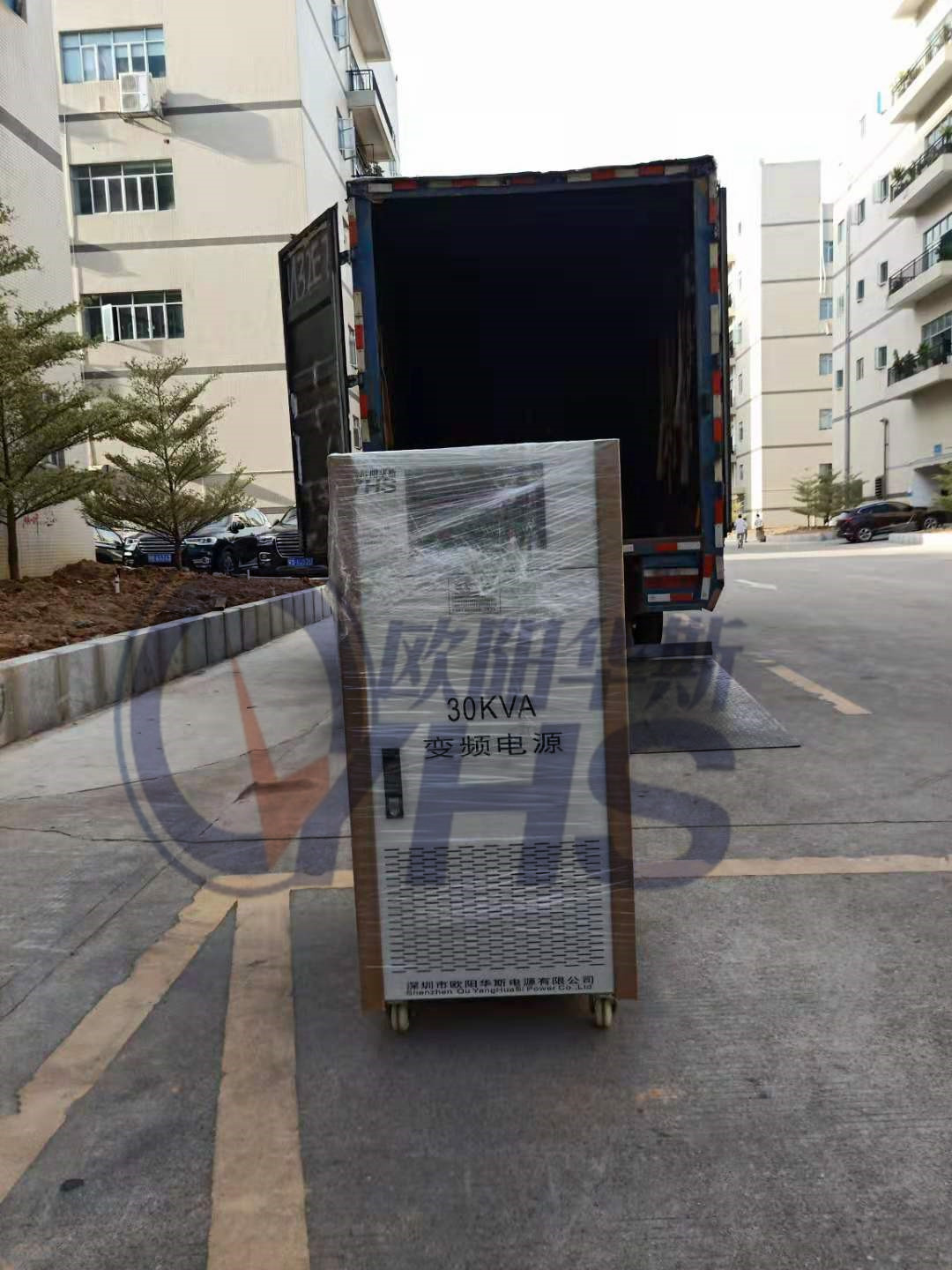 欧阳华斯30KVA变频电源出货深圳沙井家电厂,测试60HZ电热毯产品出口