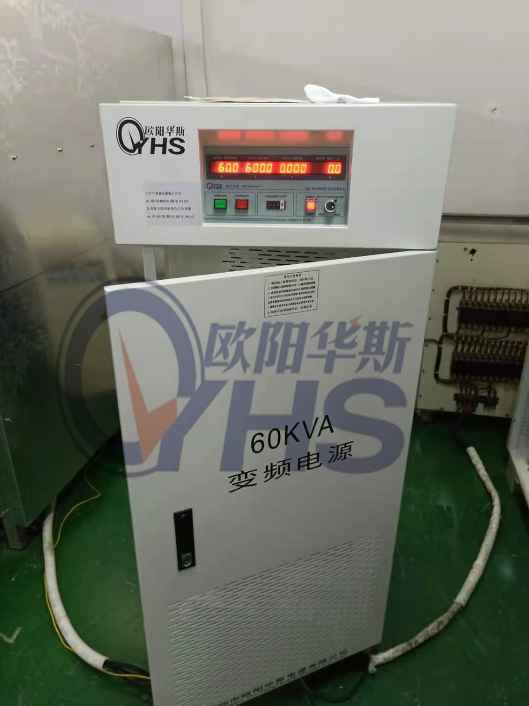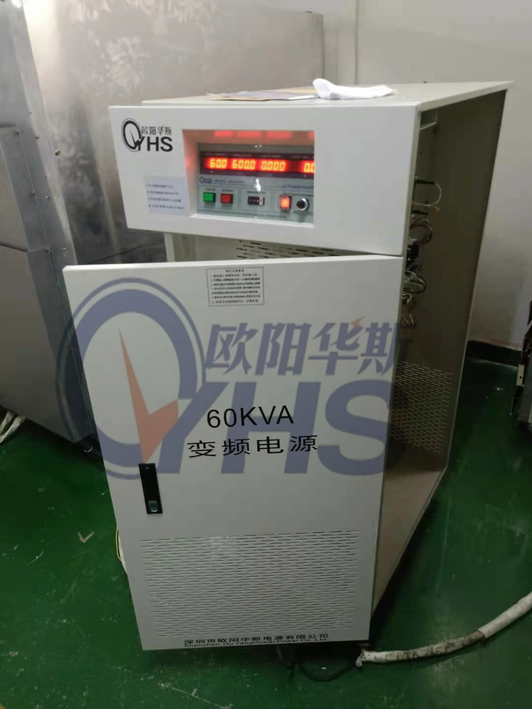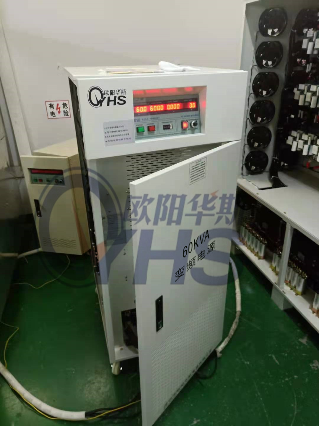 欧阳华斯60KVA变频电源出货郑州,输入60HZ,0-600V连续可调,测试PTC发热管