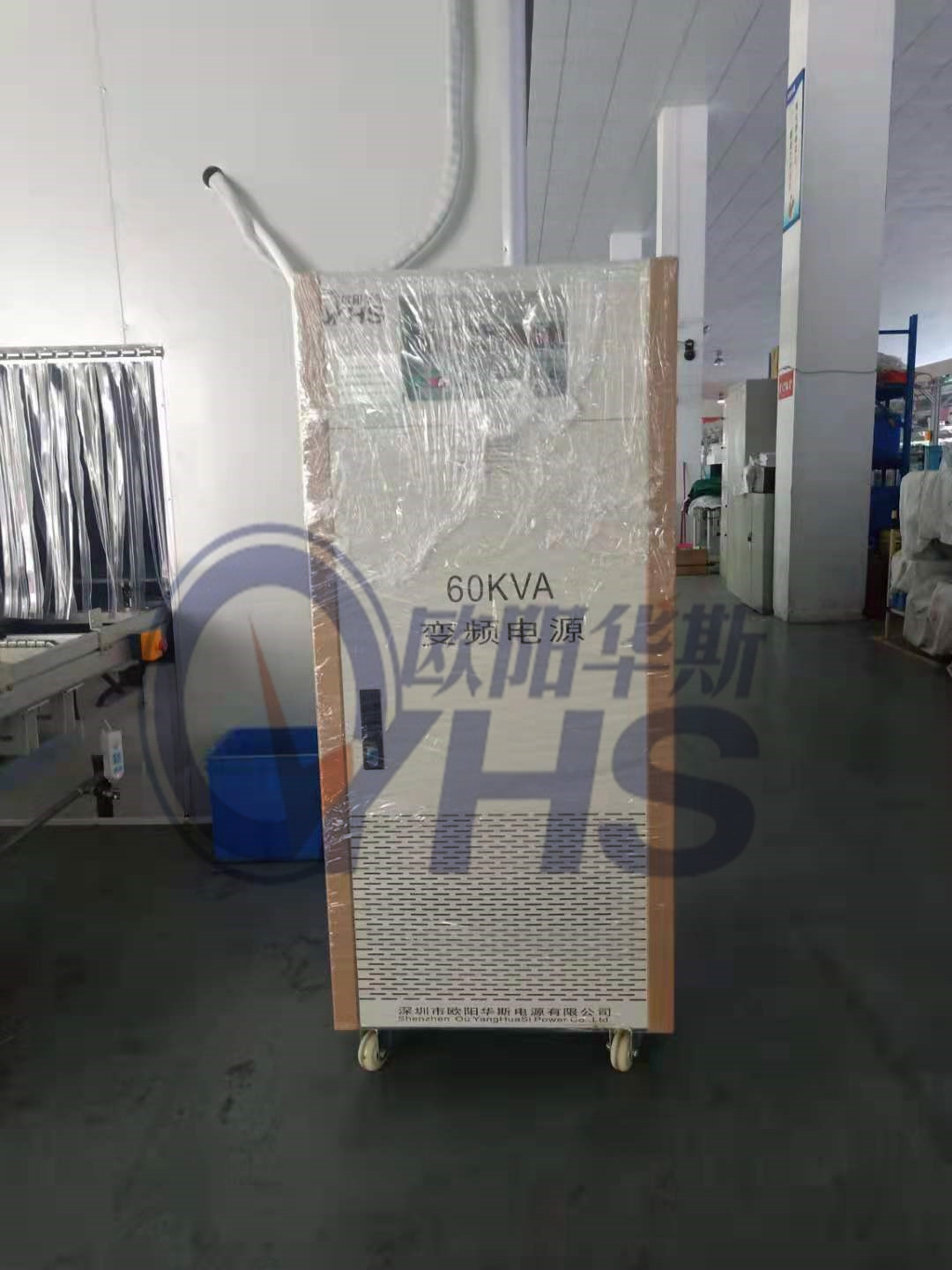 欧阳华斯三相60KVA变频电源出货中山小榄镇,新建生产流水线,测试出口产品