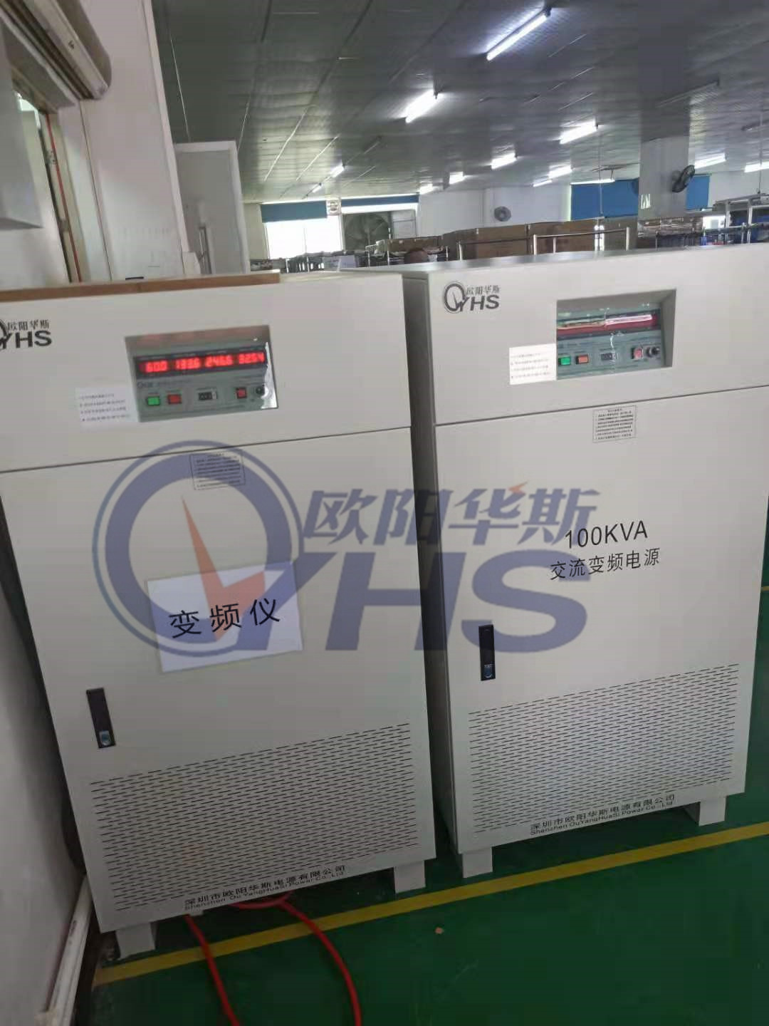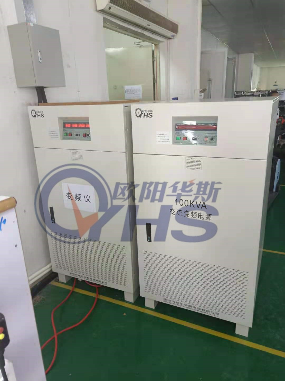 欧阳华斯二台100KVA变频电源出货东莞谢岗美容美发器材厂,测试出口小家电60HZ