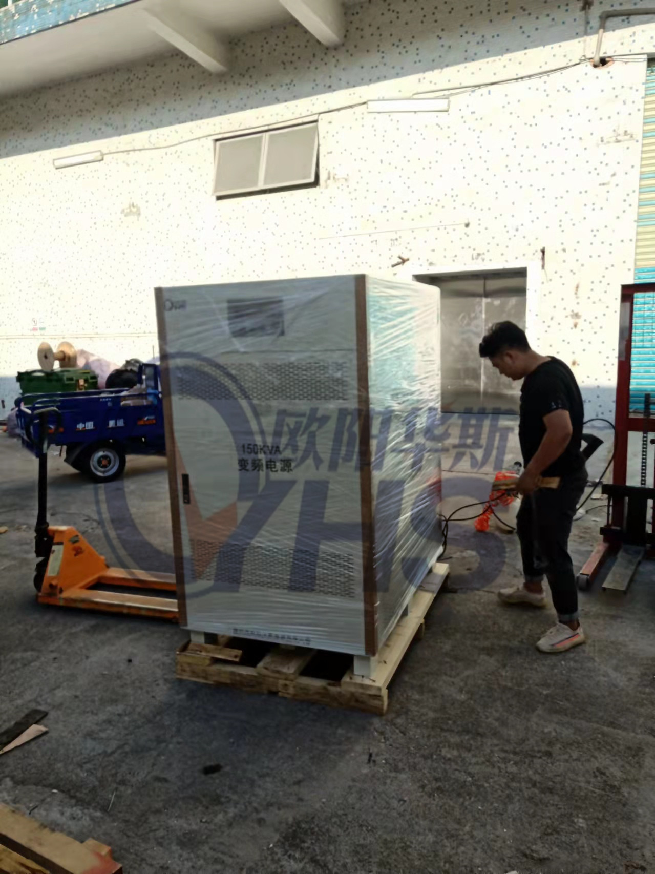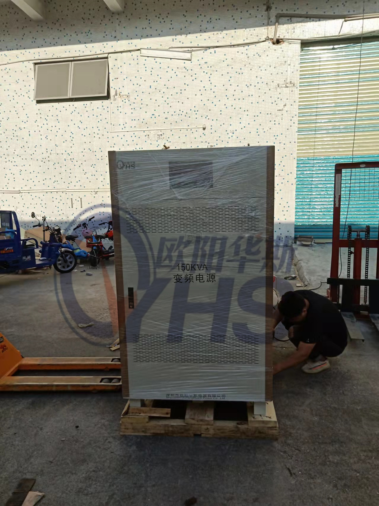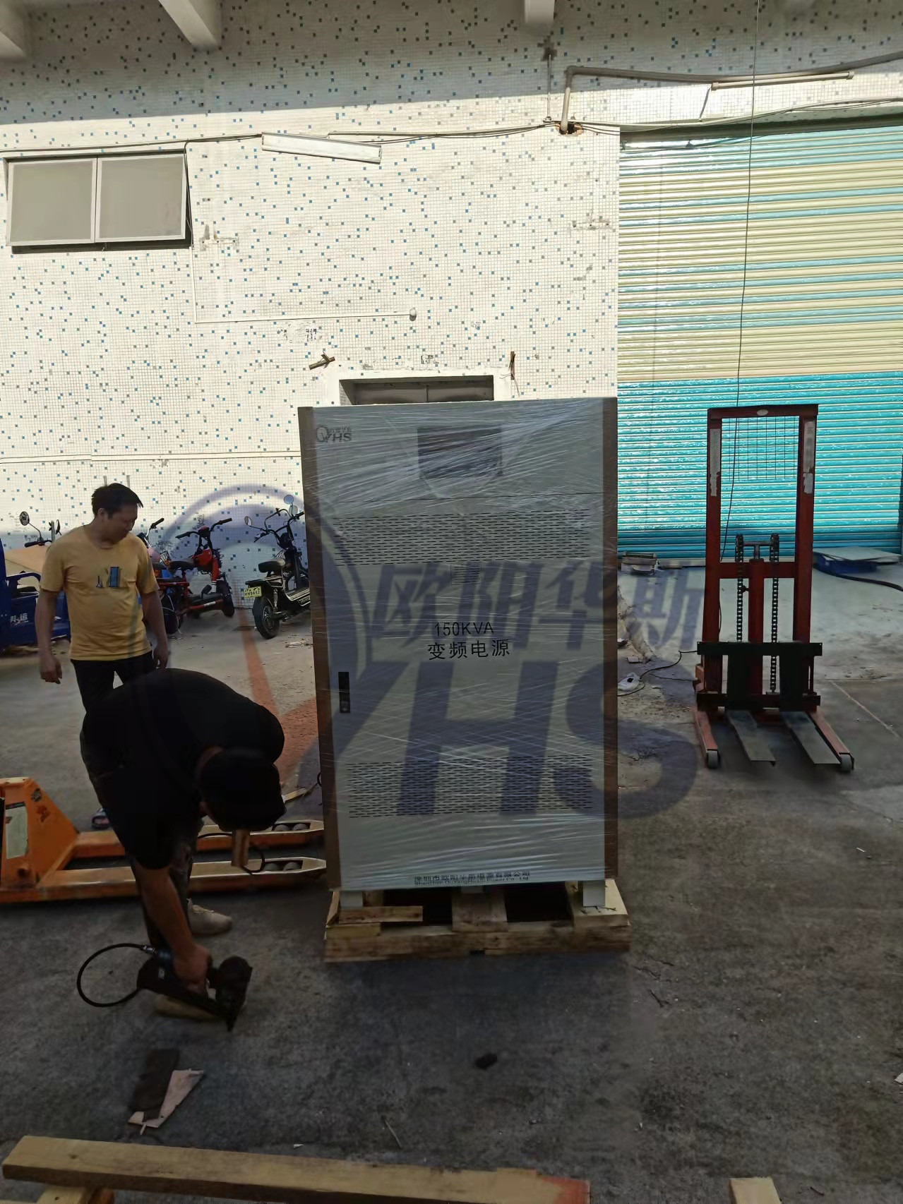 欧阳华斯三相150KVA变频电源出货海南,输出三相440V 60HZ,带设备调试使用。