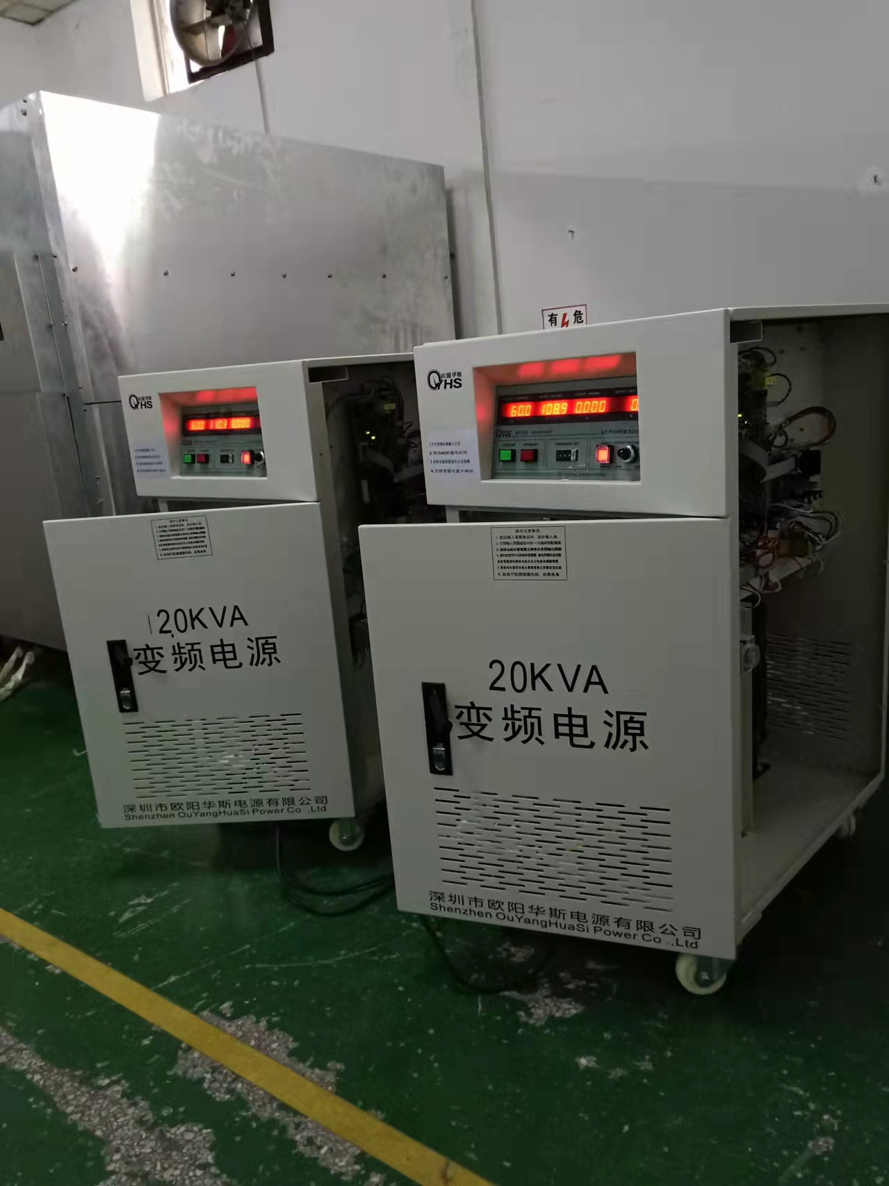 欧阳华斯二台20KVA变频电源出货深圳南山科技园区,实验室测试使用,输出60HZ。