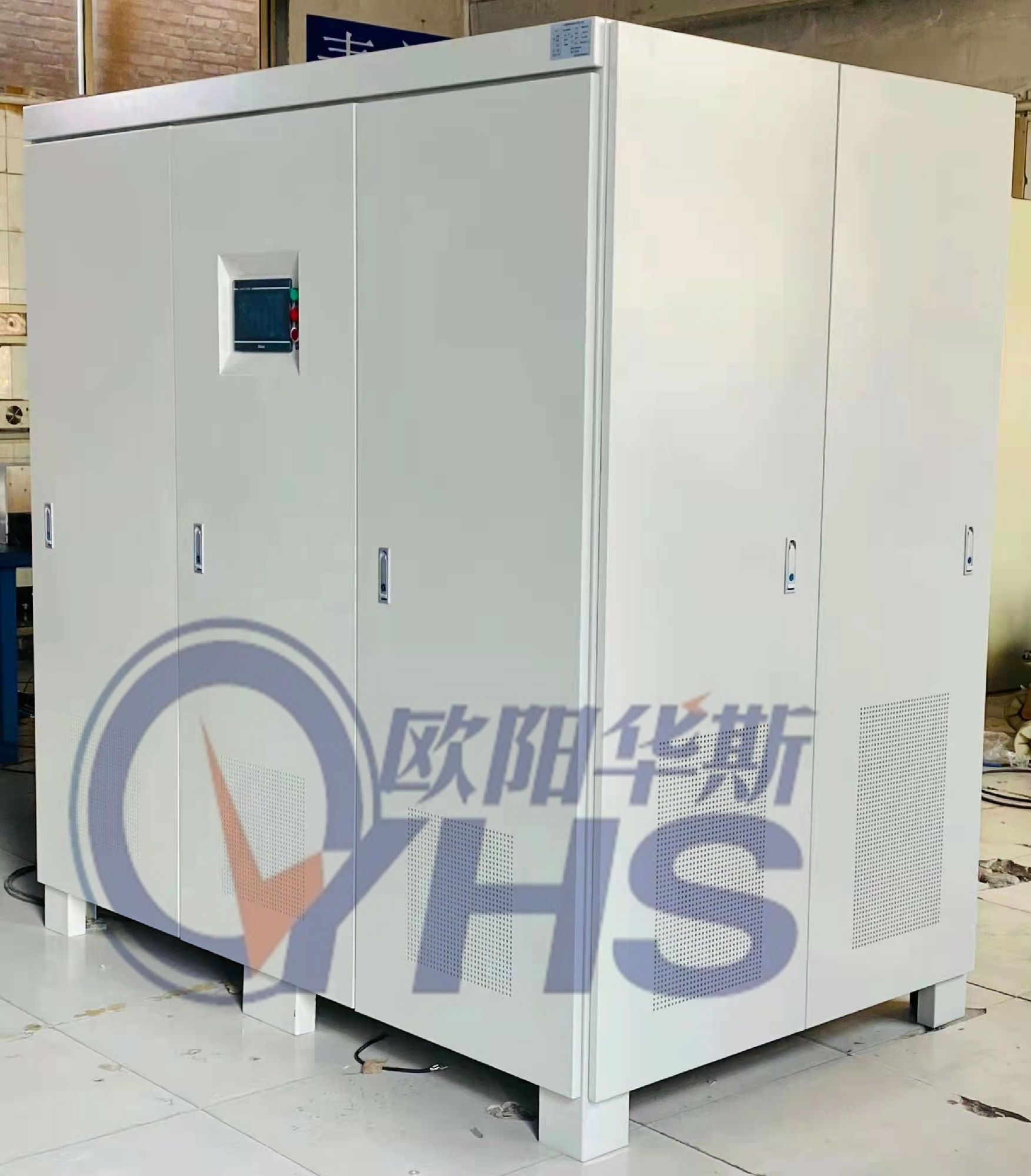欧阳华斯三相600KVA变频电源出货,输入三相440V 60HZ,输出三相380V 50HZ,带国内设备使用。