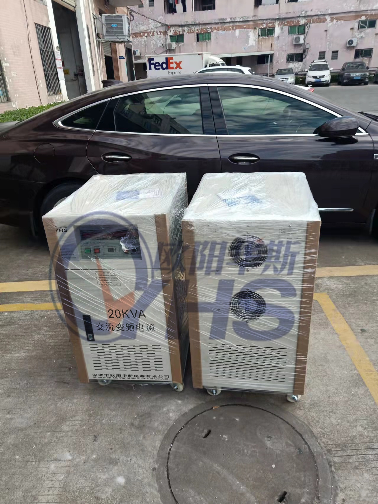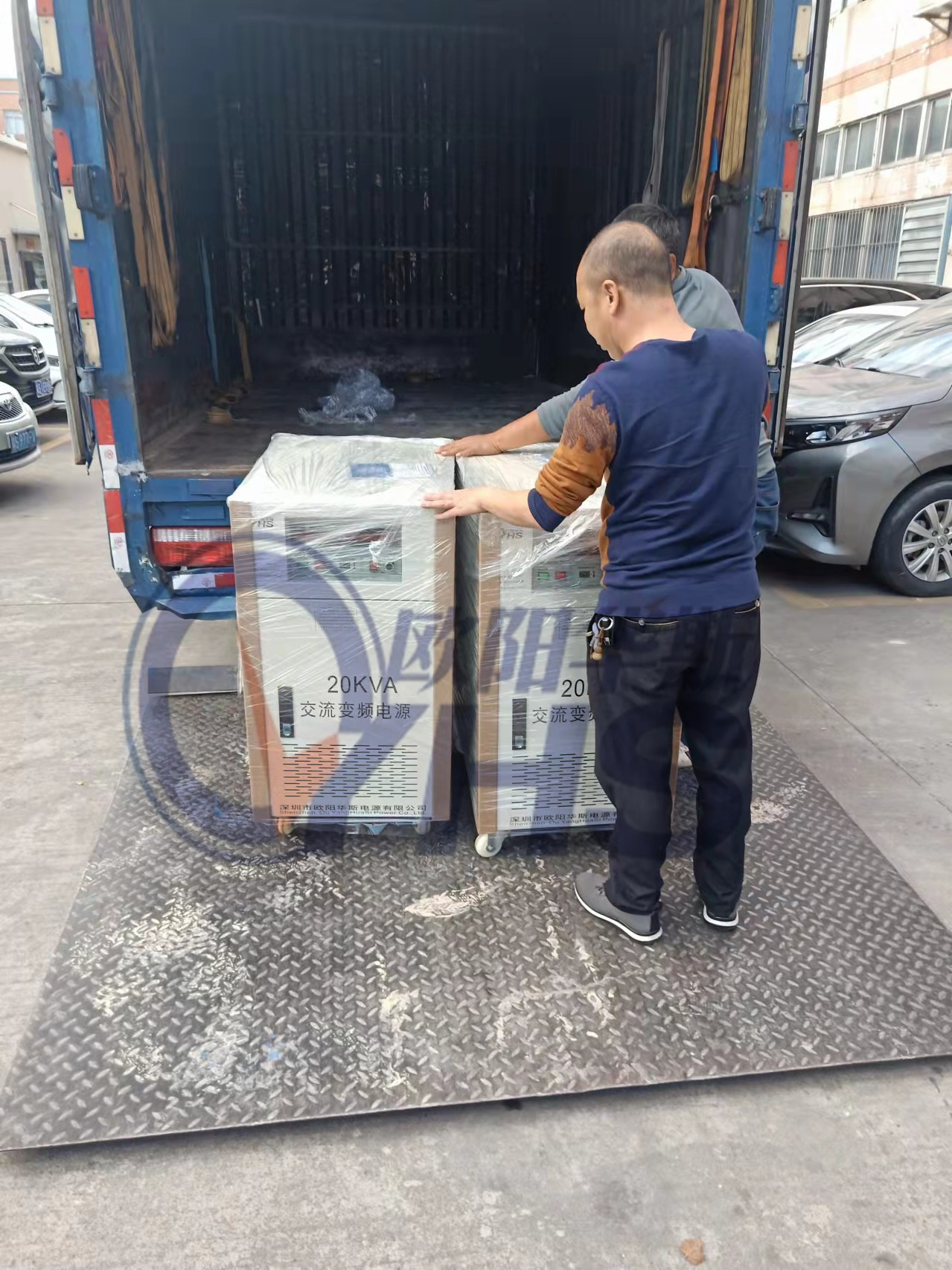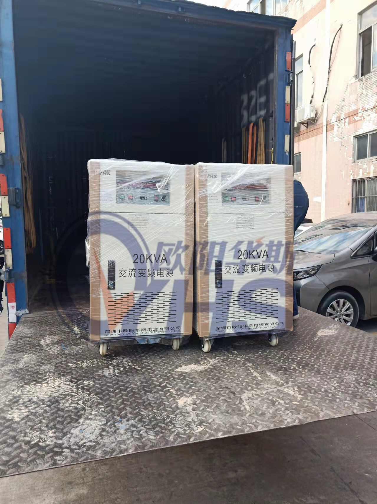 欧阳华斯二台20KVA变频电源出货东莞清溪家电厂,测试220V 60HZ出口产品。