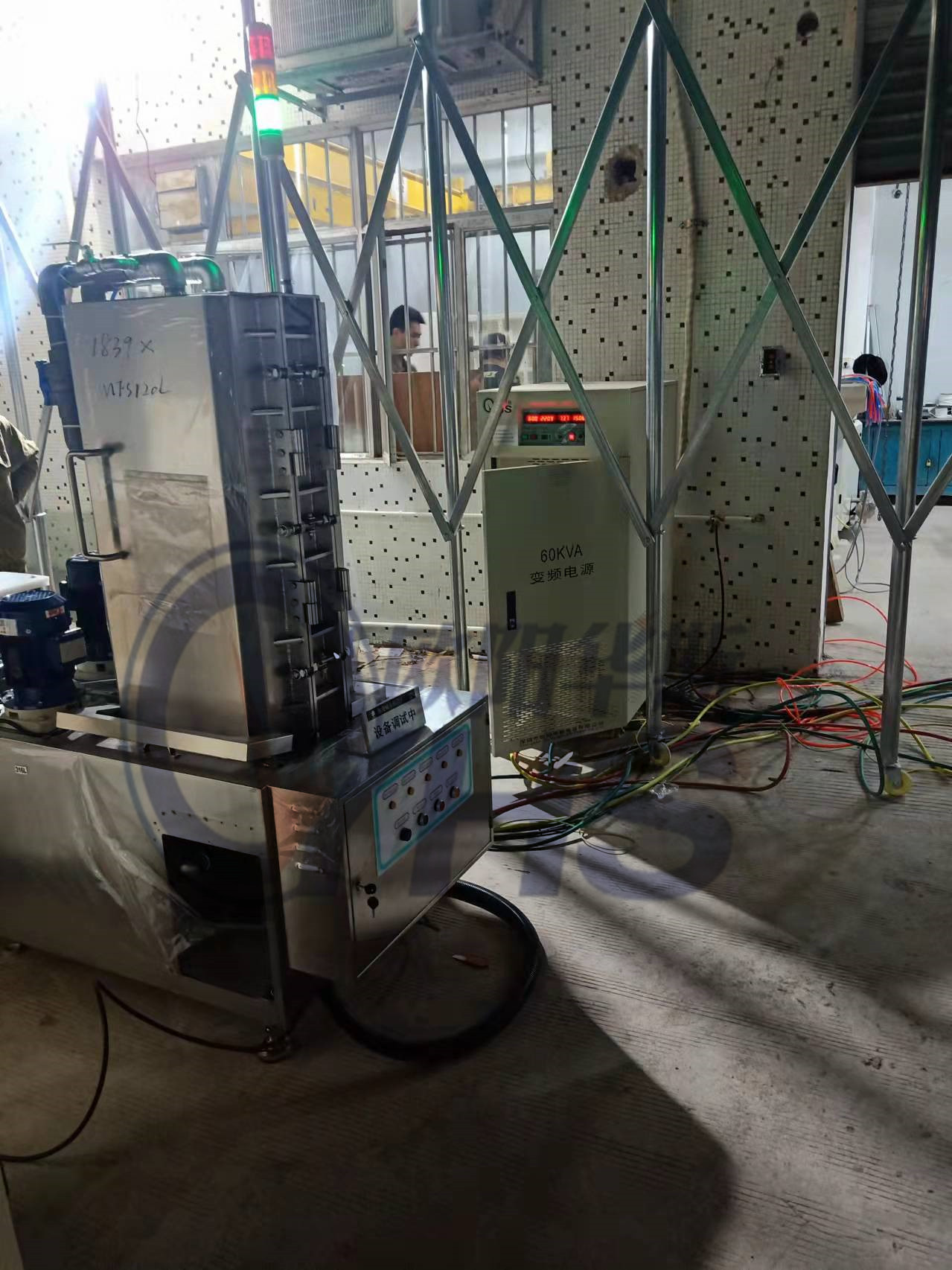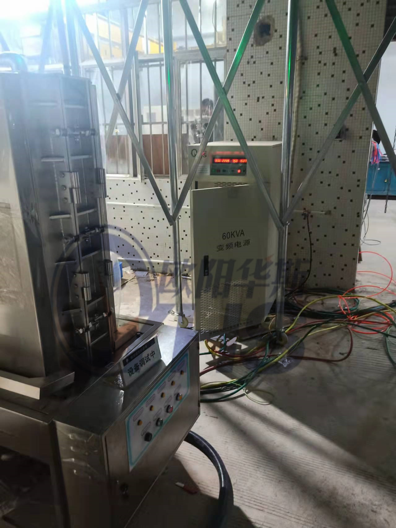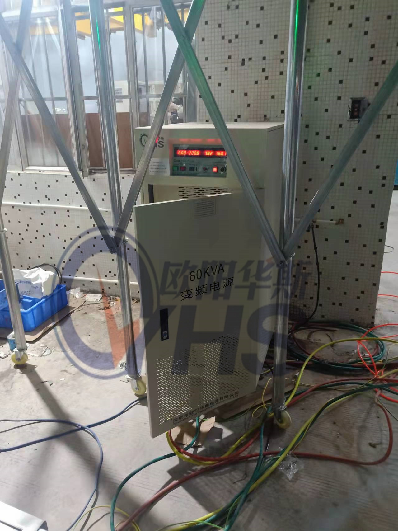 欧阳华斯三相60KVA变频电源测试出口韩国设备,输出三相380V 60HZ。