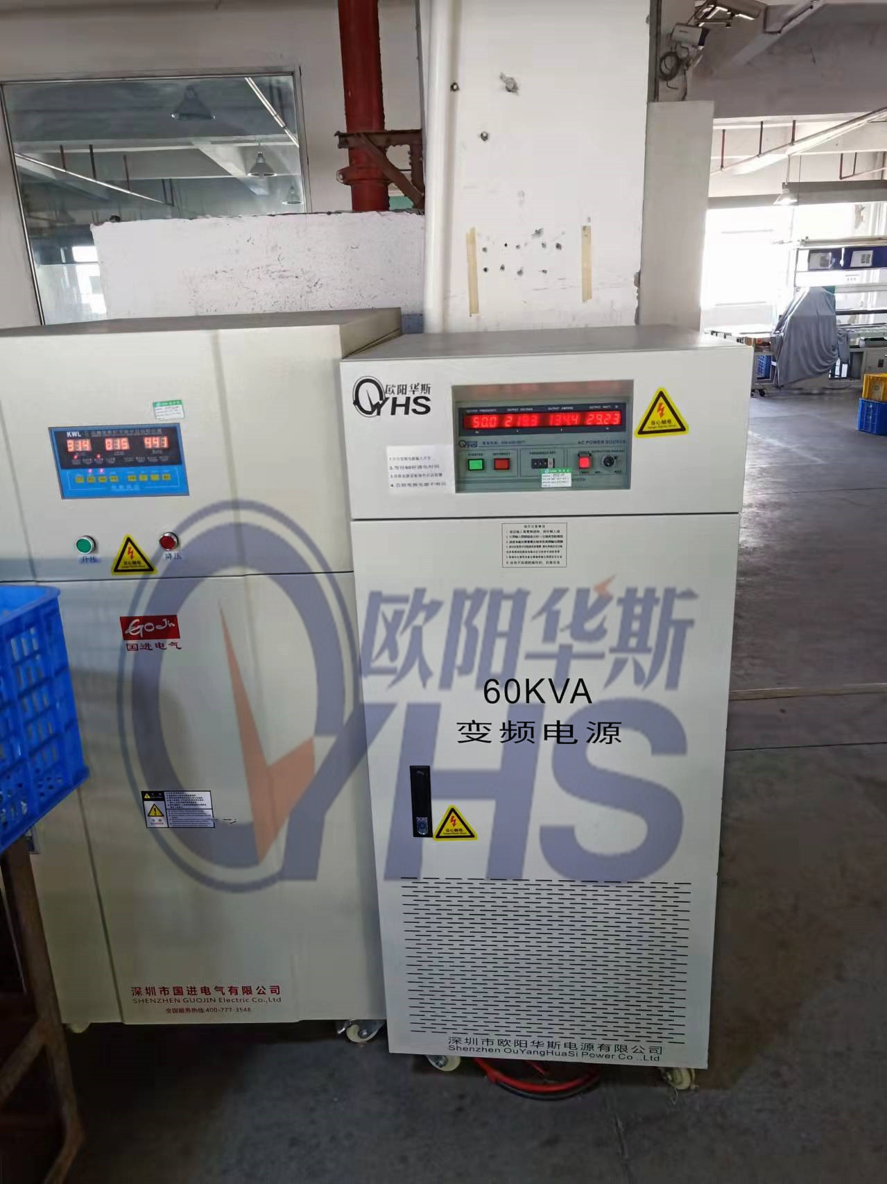 欧阳华斯60KVA变频电源出货深圳PTC设备厂,输出220V 50HZ。测试产品需求。
