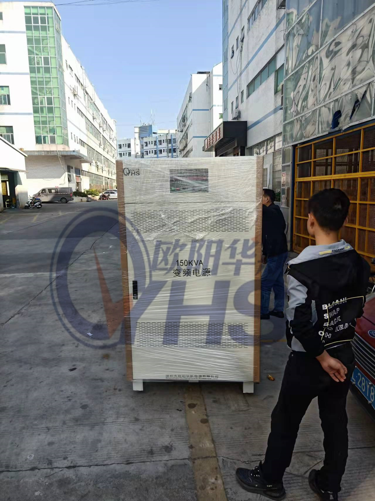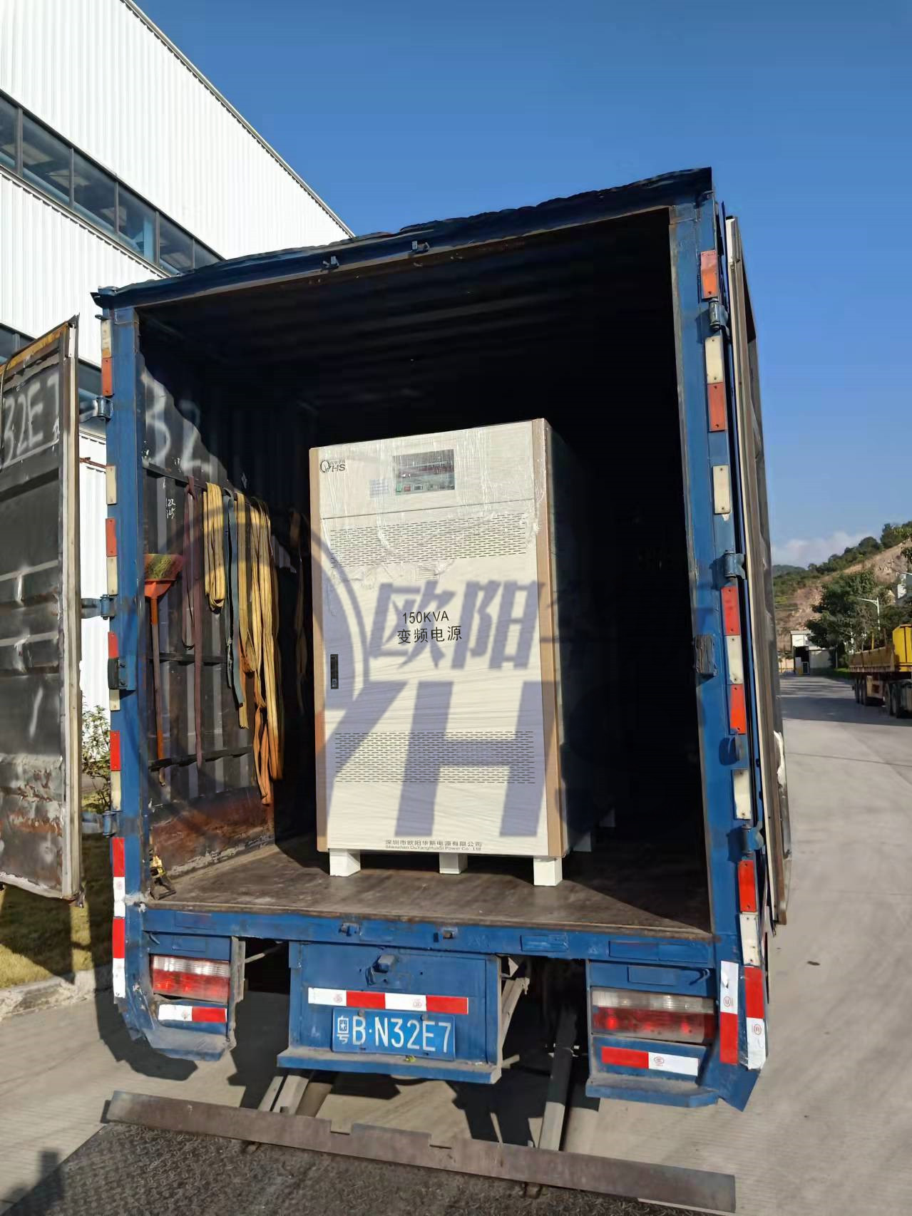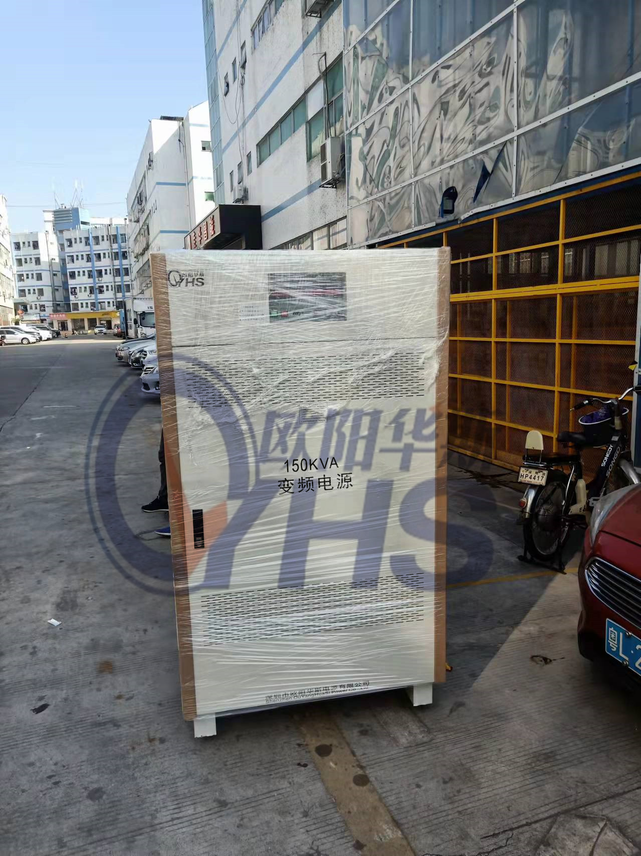 欧阳华斯三相150KVA变频电源出货惠州,输出三相460V 60HZ,测试出口美国设备使用。
