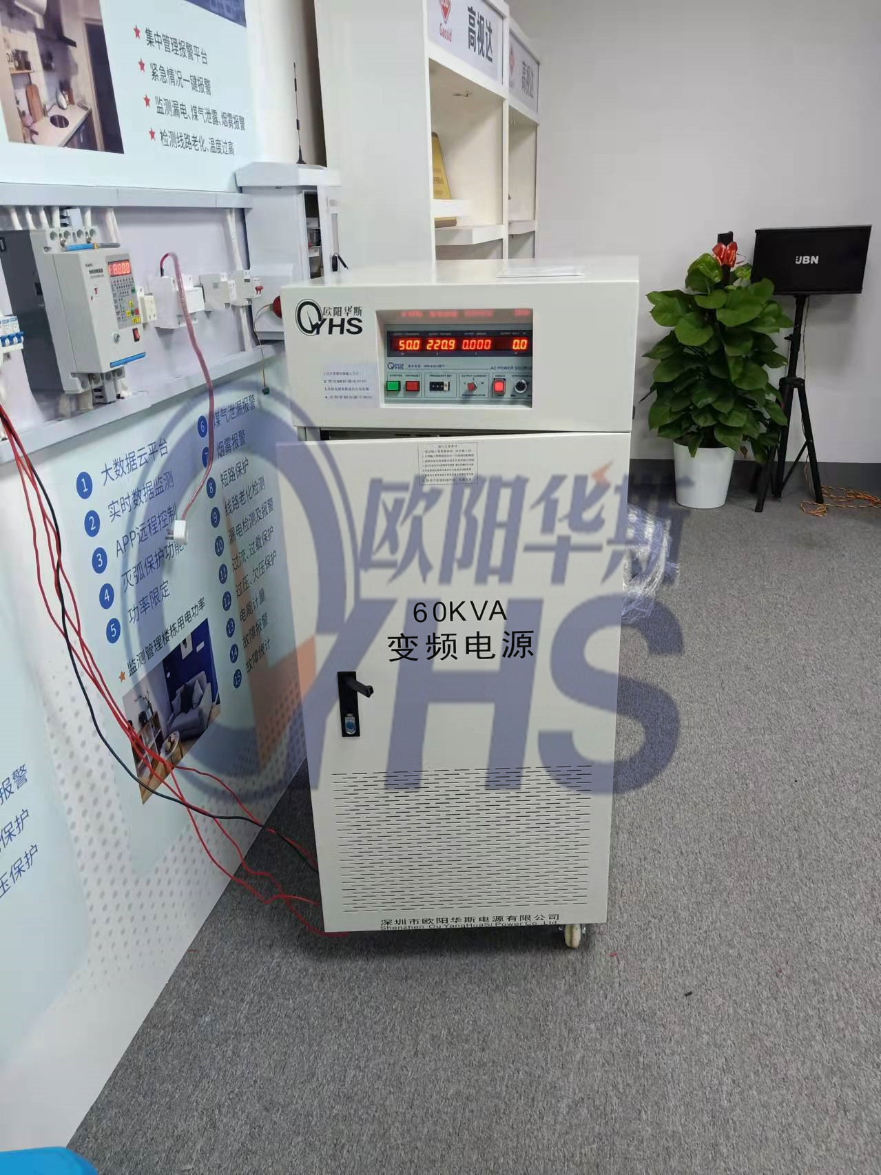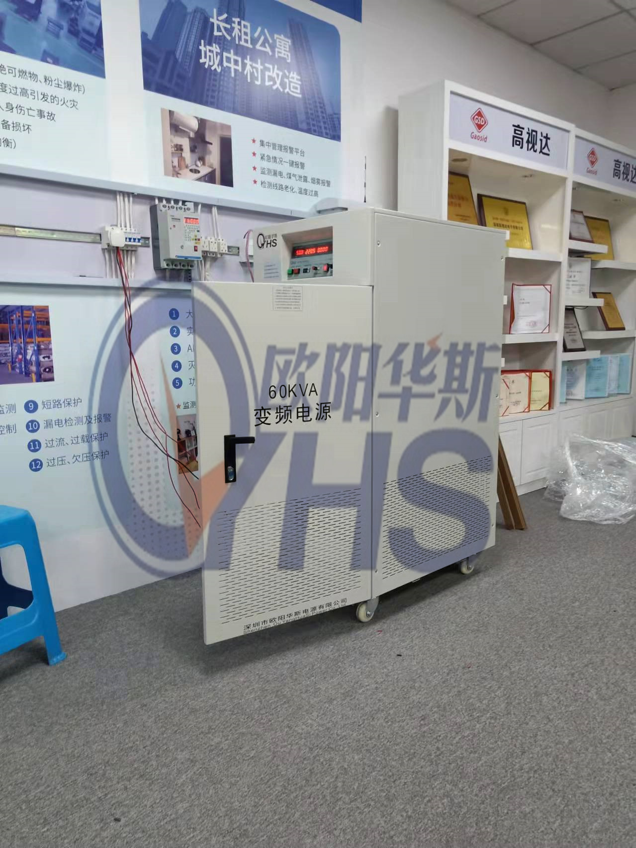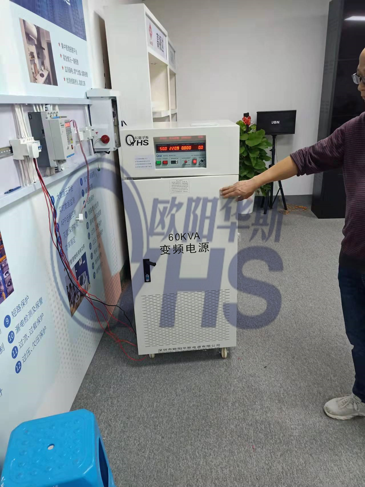 欧阳华斯三相60KVA变频电源出货深圳大浪电器厂,测试短路功能。