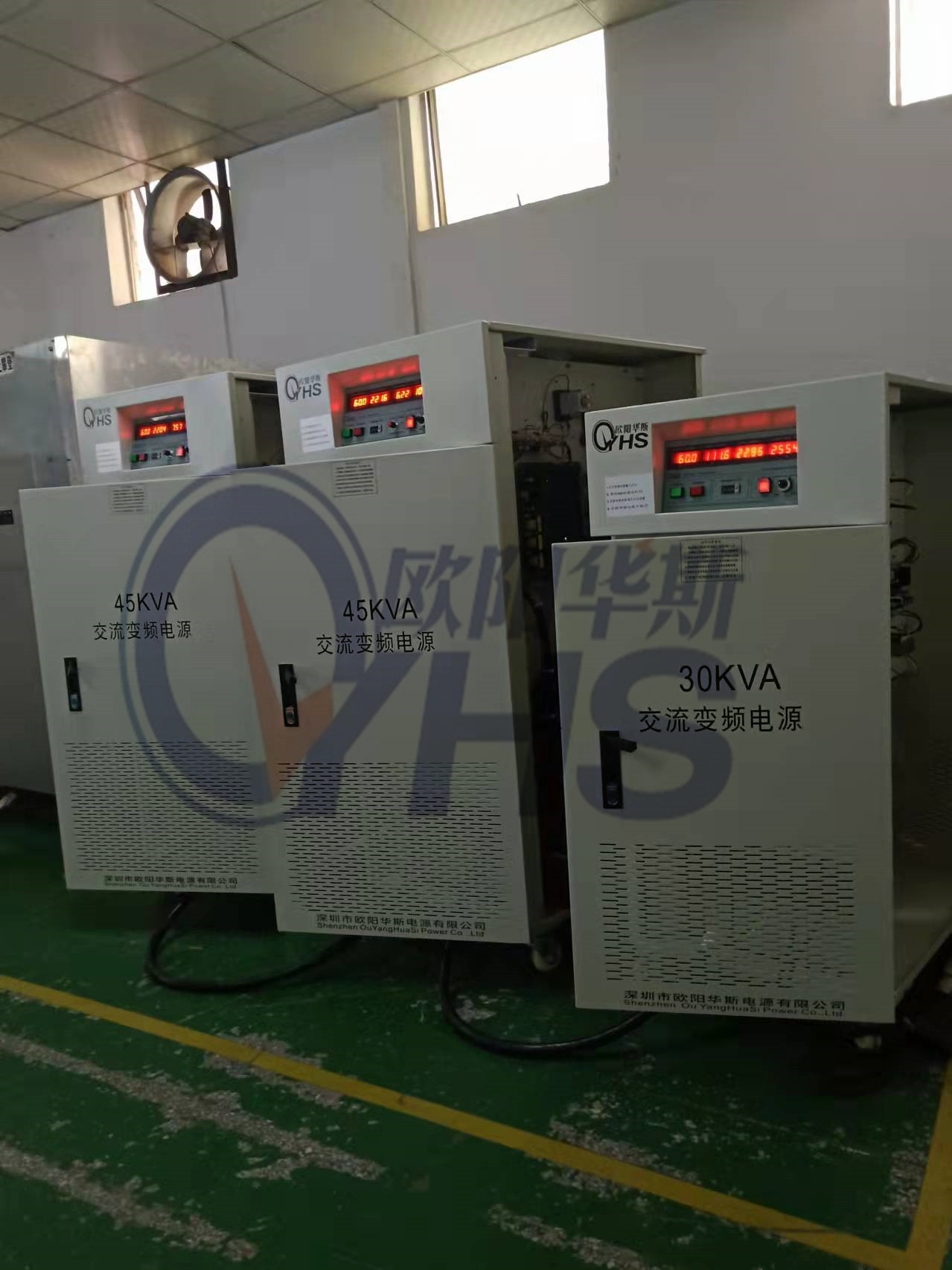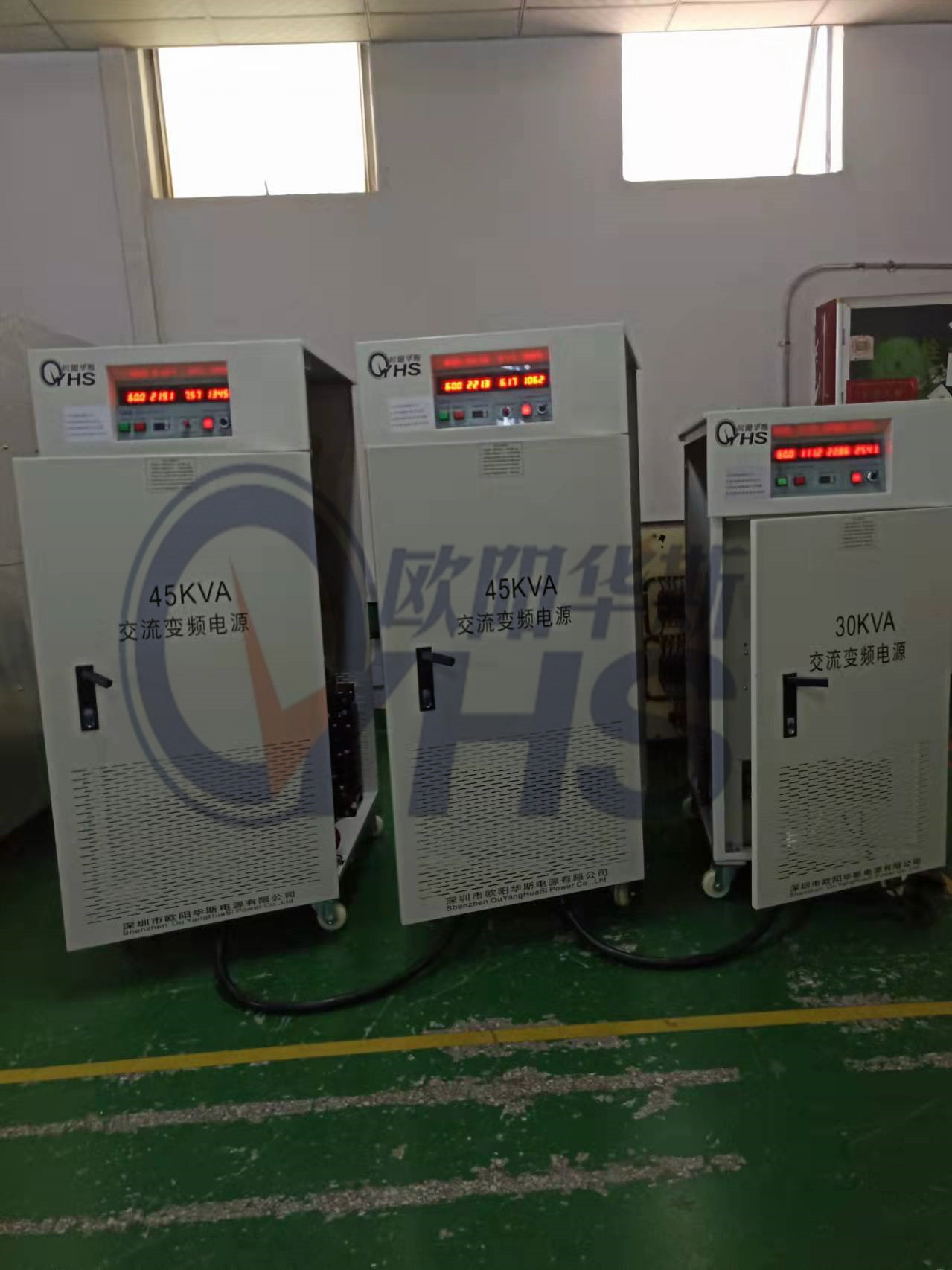 欧阳华斯三相45KVA变频电源,数量二台,测试出口美国设备,输出三相220V 60HZ。