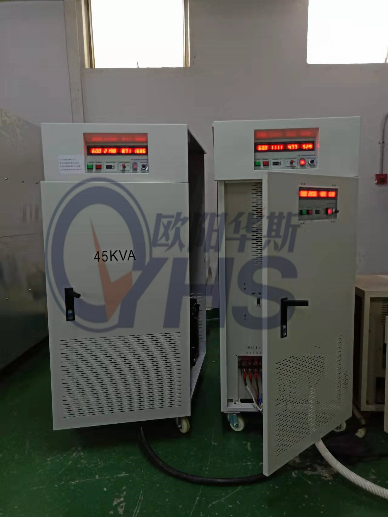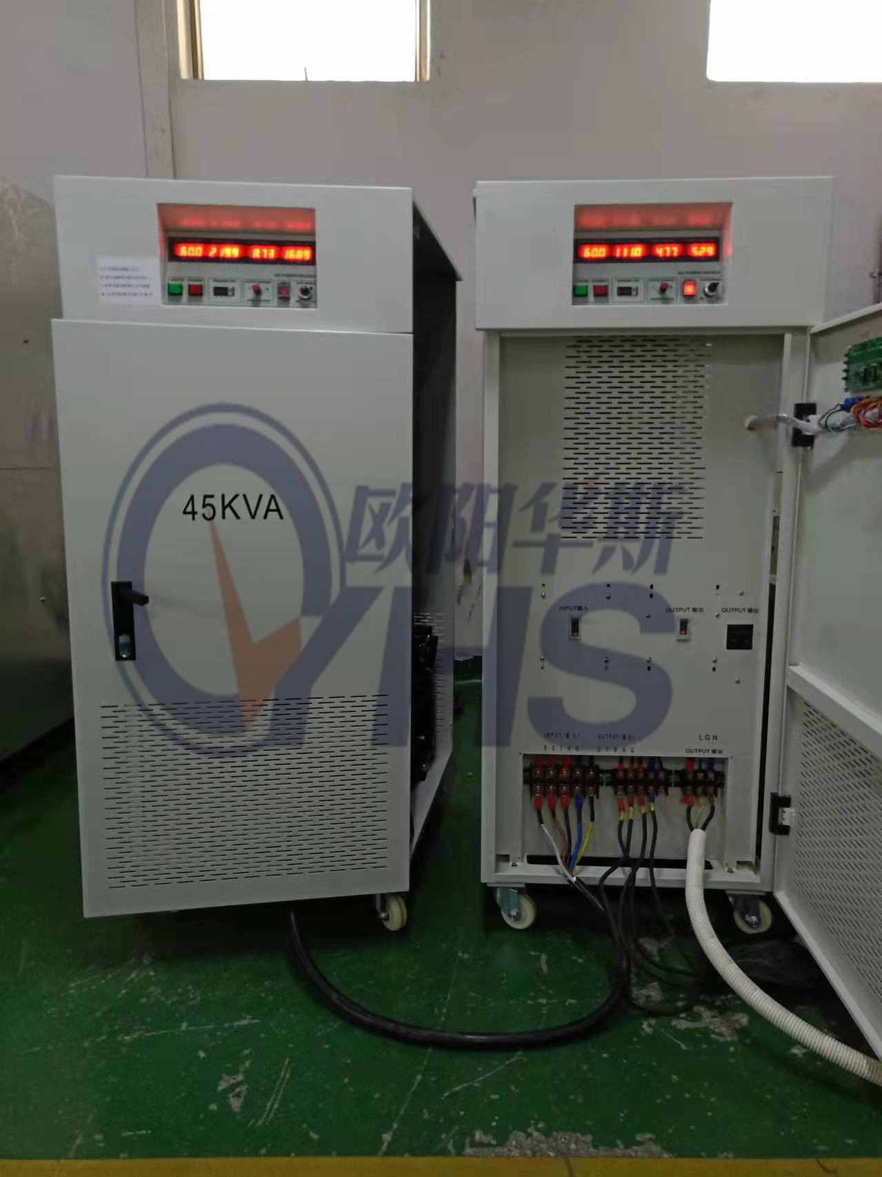 欧阳华斯25KVA变频电源出货上海,二路输出,一路10KVA单相输出,一路15KVA三相输出。