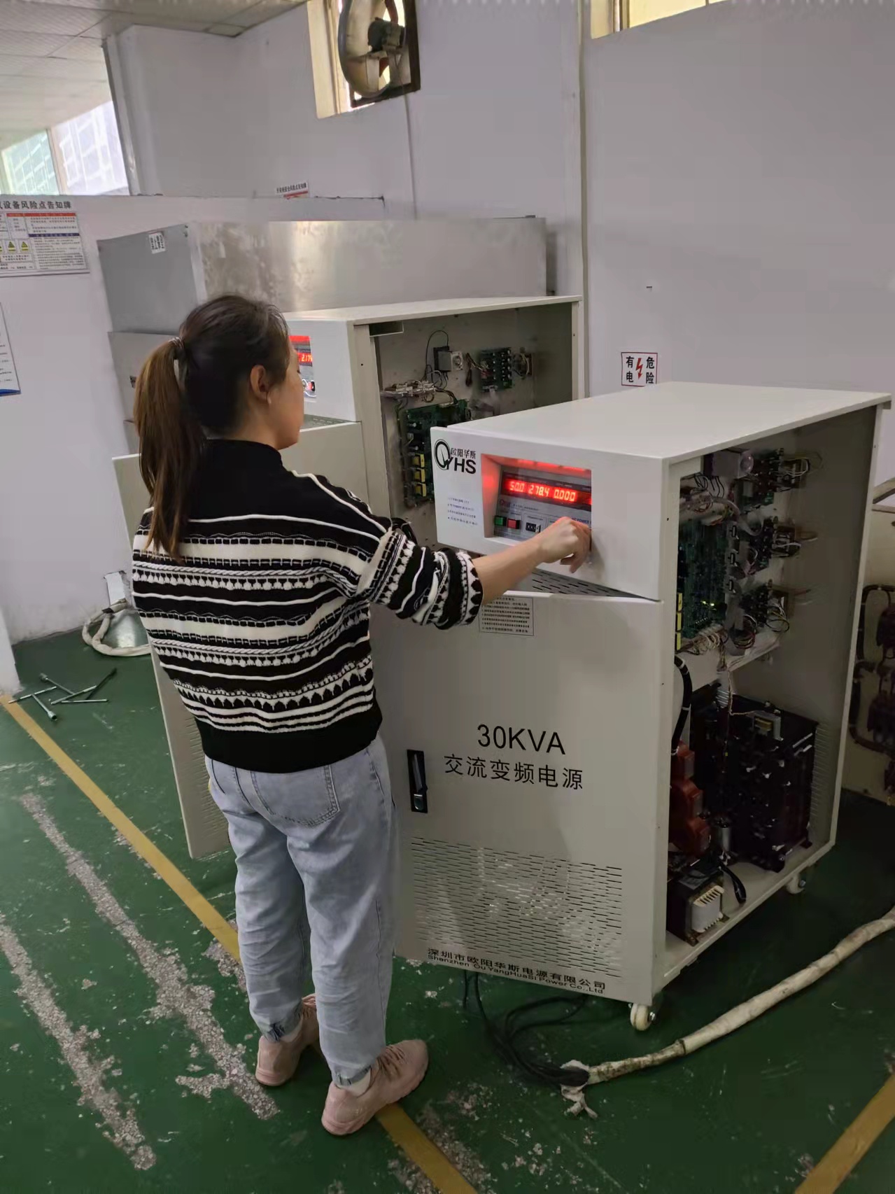 欧阳华斯三相30KVA变频电源出货青岛,船上供电使用,输入三相440V 60HZ,输出三相380V 50HZ。