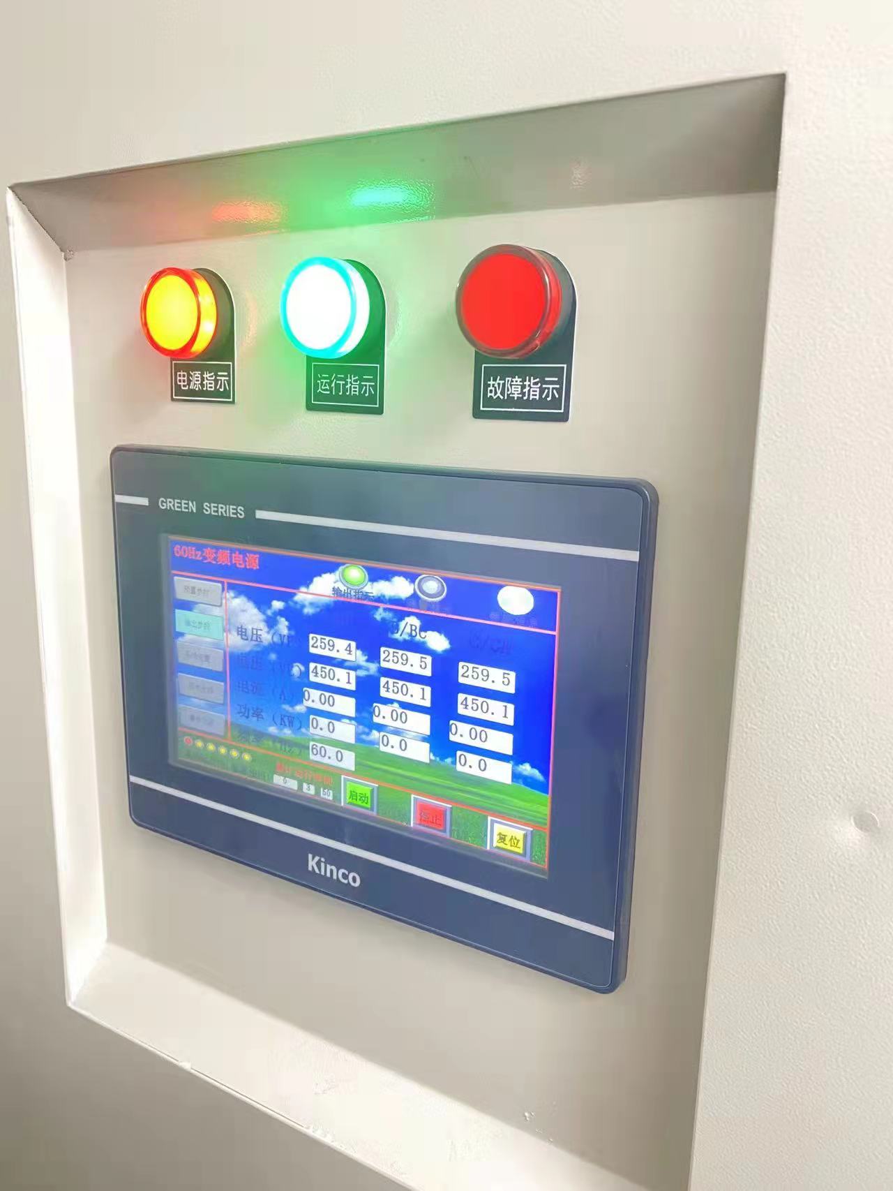 欧阳华斯三相500KVA变频电源,集装箱式变频电源,IP56,输出三相440V 60HZ。测试出口设备使用。