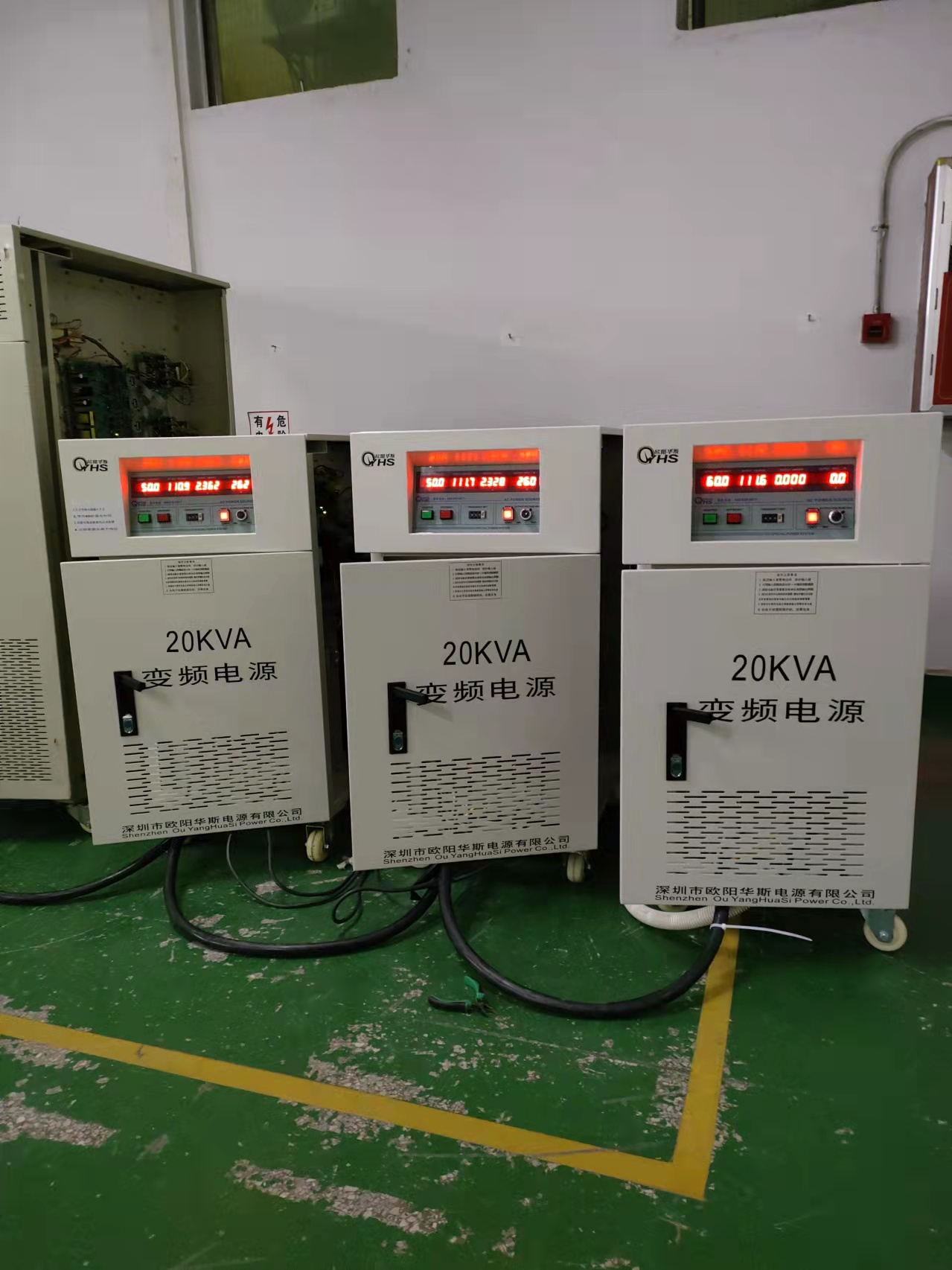 欧阳华斯三台20KVA变频电源出货惠州,输入三相220V 60HZ,输出单相220V 50HZ,带国内设备出口美国。