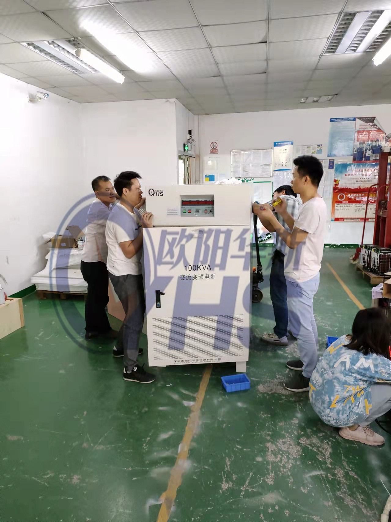 欧阳华斯100KVA变频电源出货广州,输出120V 60HZ,测试出口小家电产品。