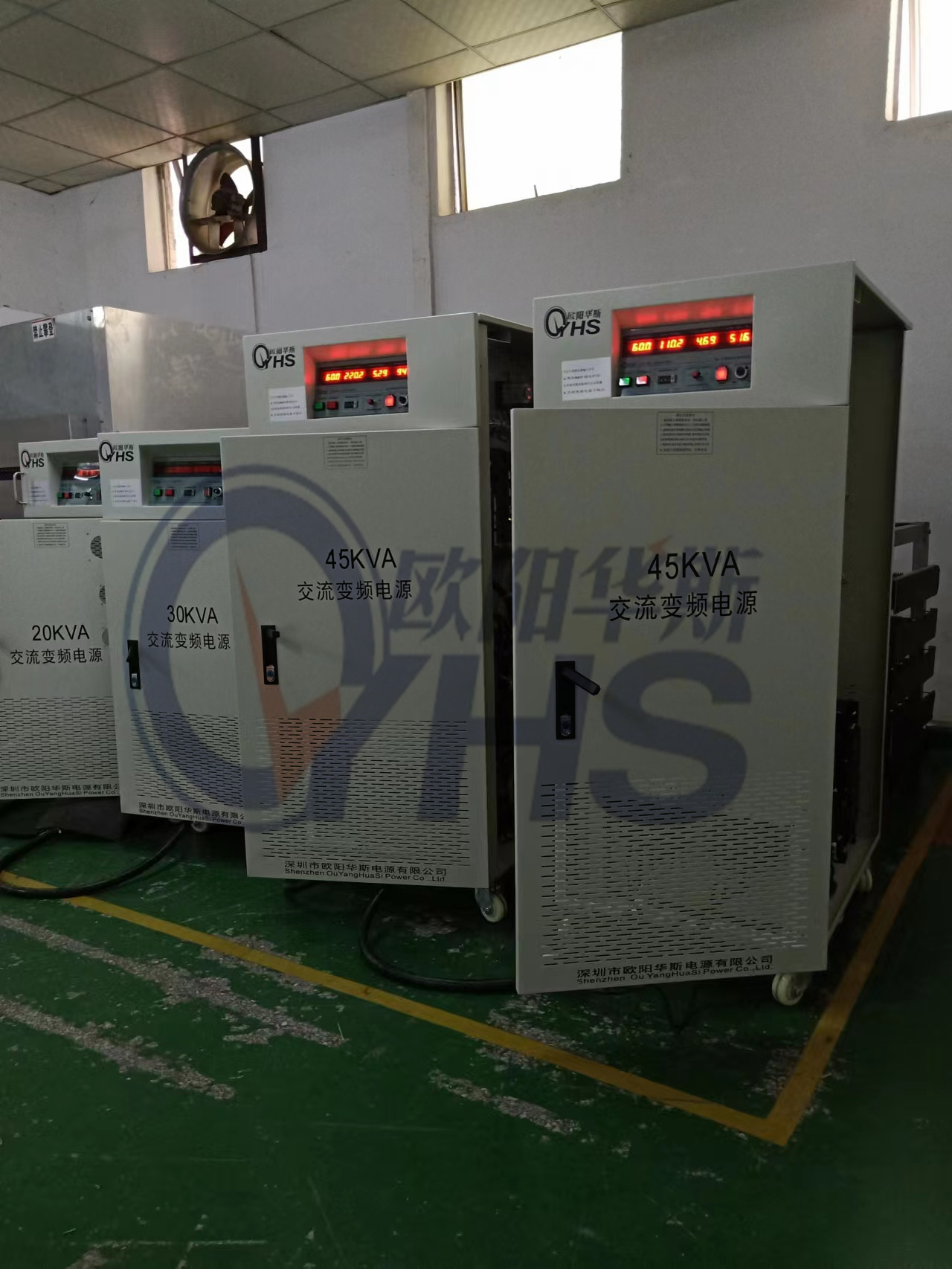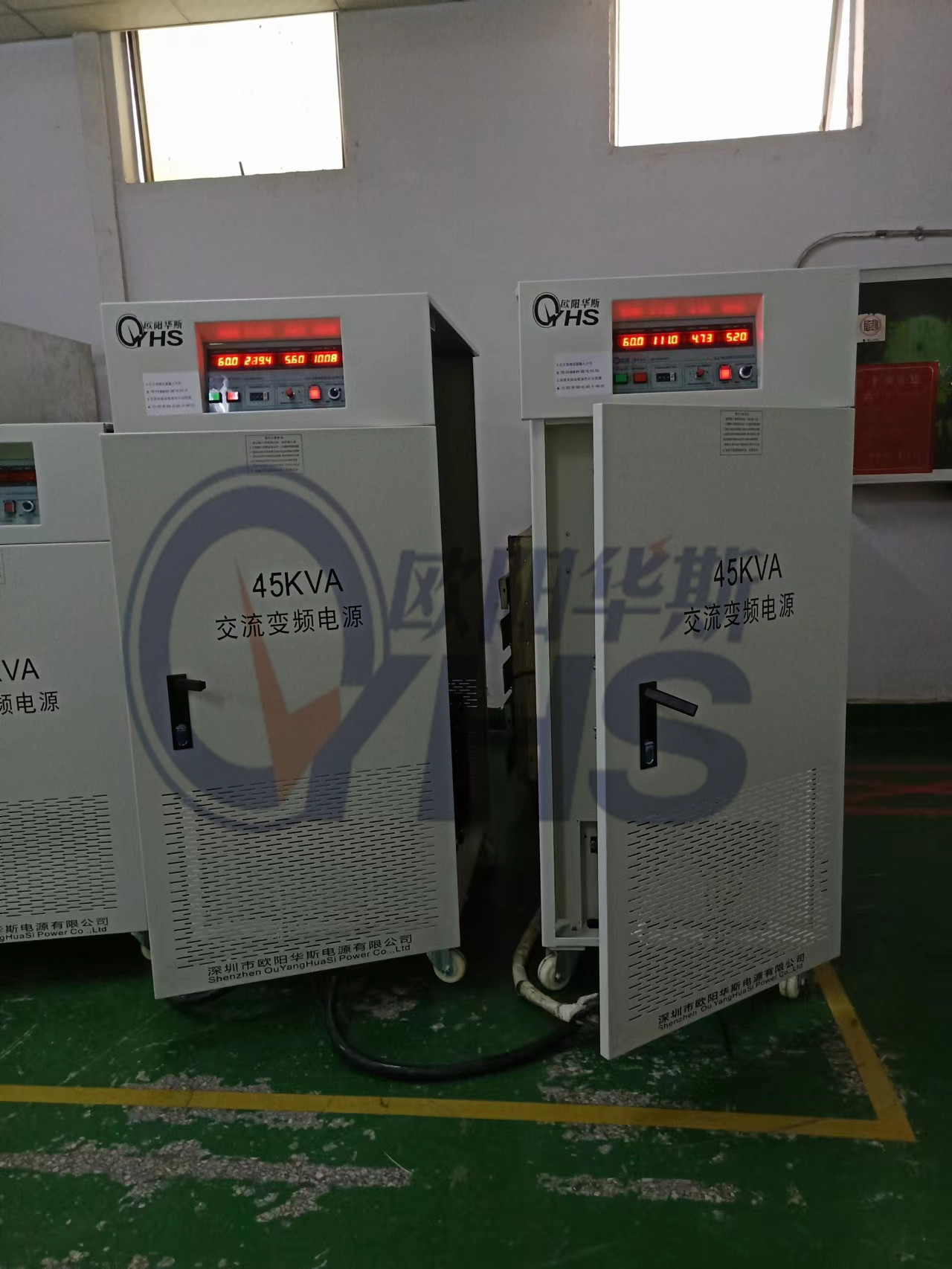 欧阳华斯三相45KVA变频电源出货江苏苏州,数量二台,测试380V 60HZ出口产品