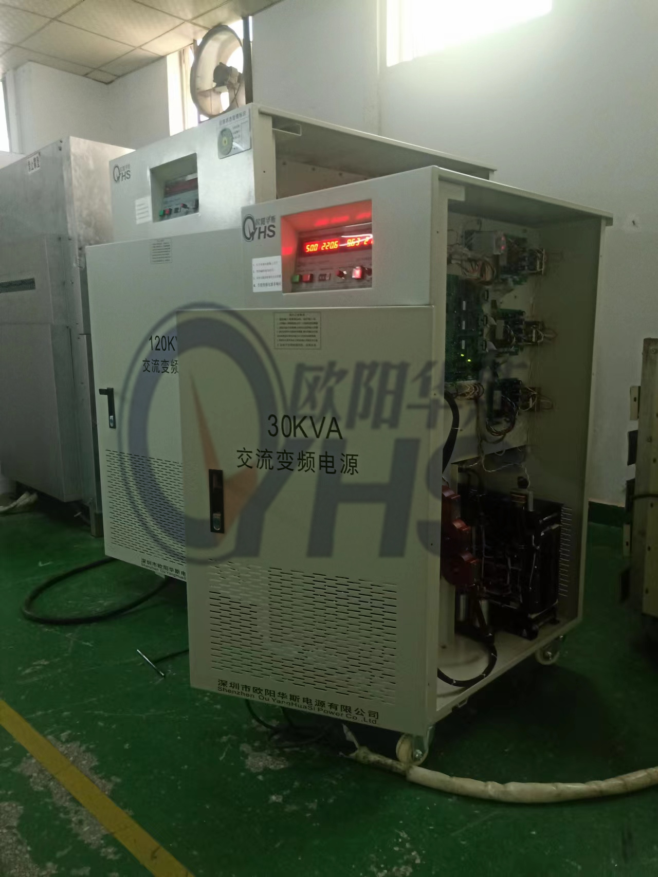 欧阳华斯三相400KVA变频电源紧张备货中,测试产品电网拉偏适应能力,输出三相380V 50HZ