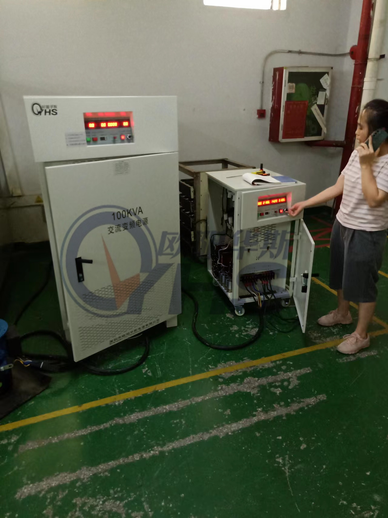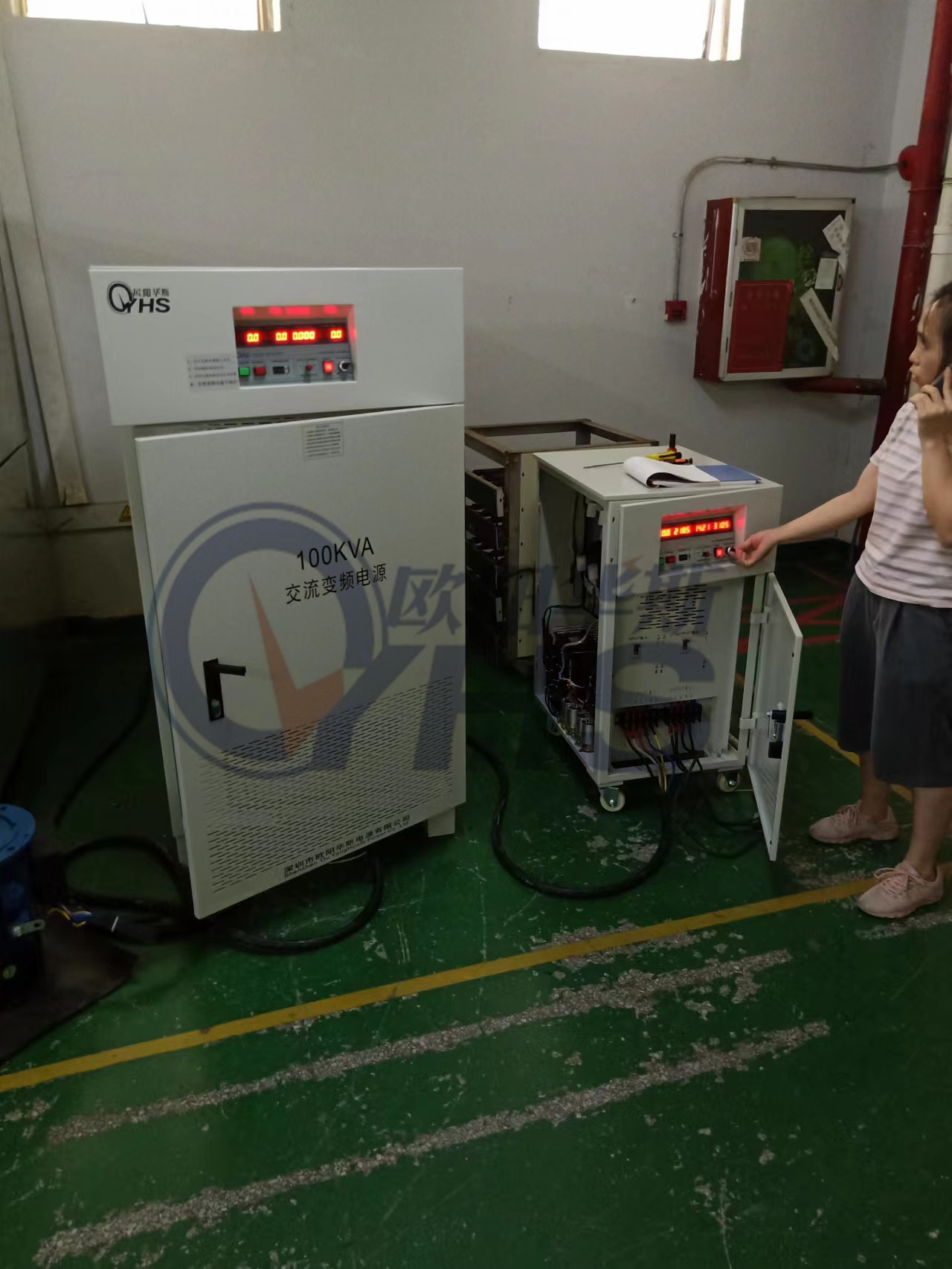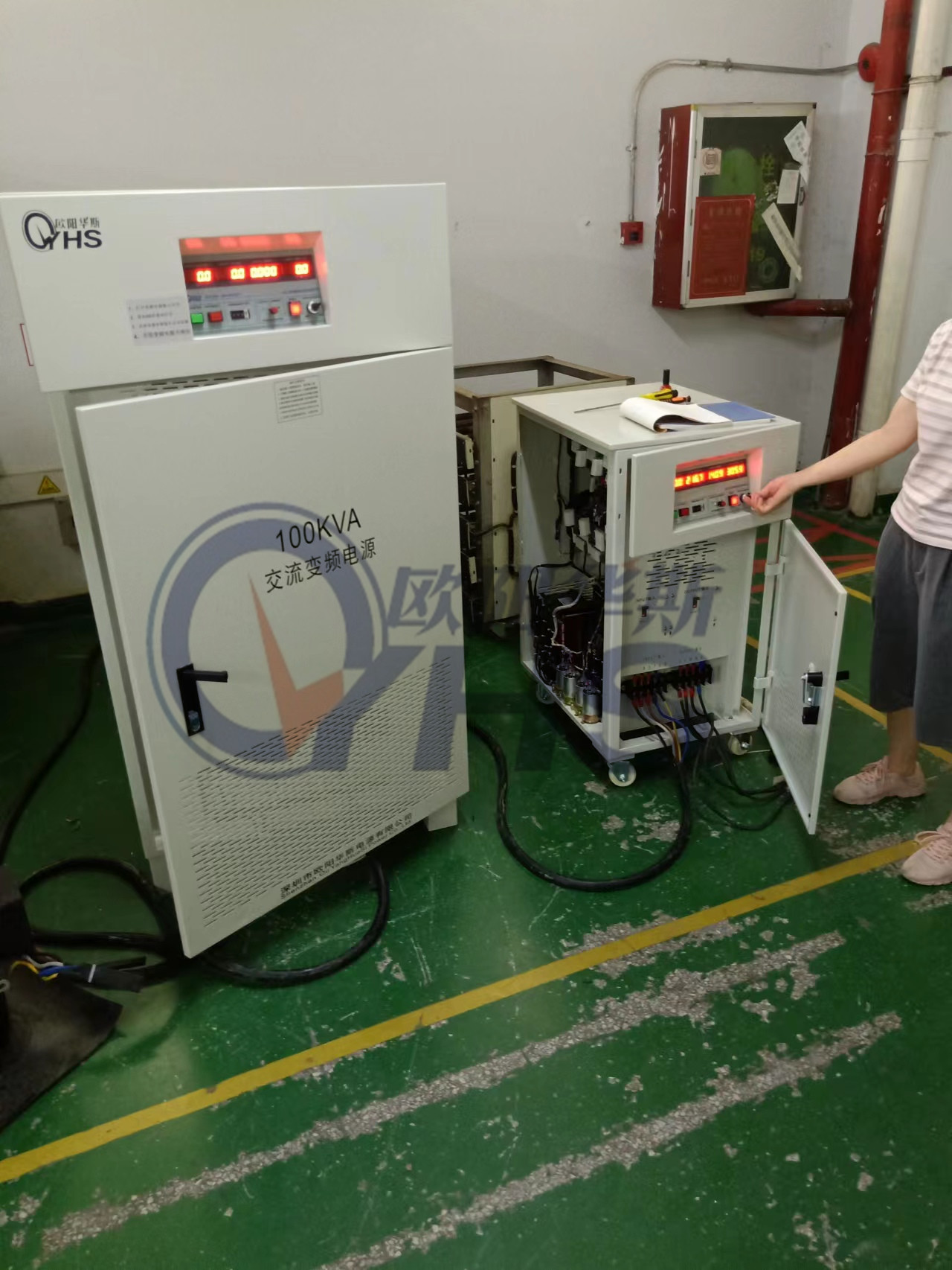 欧阳华斯三相100KVA变频电源出货安徽合肥,输出三相480V 60HZ,测试出口美国设备使用。