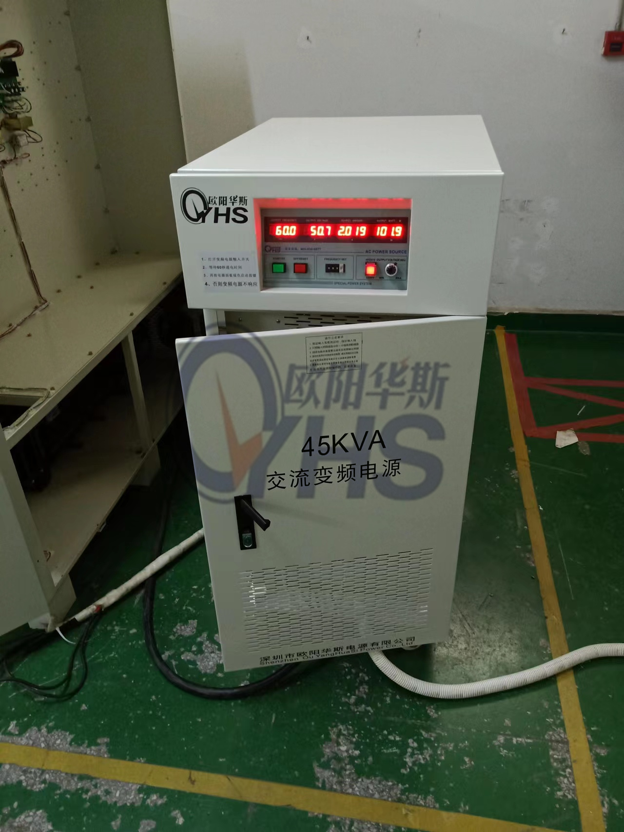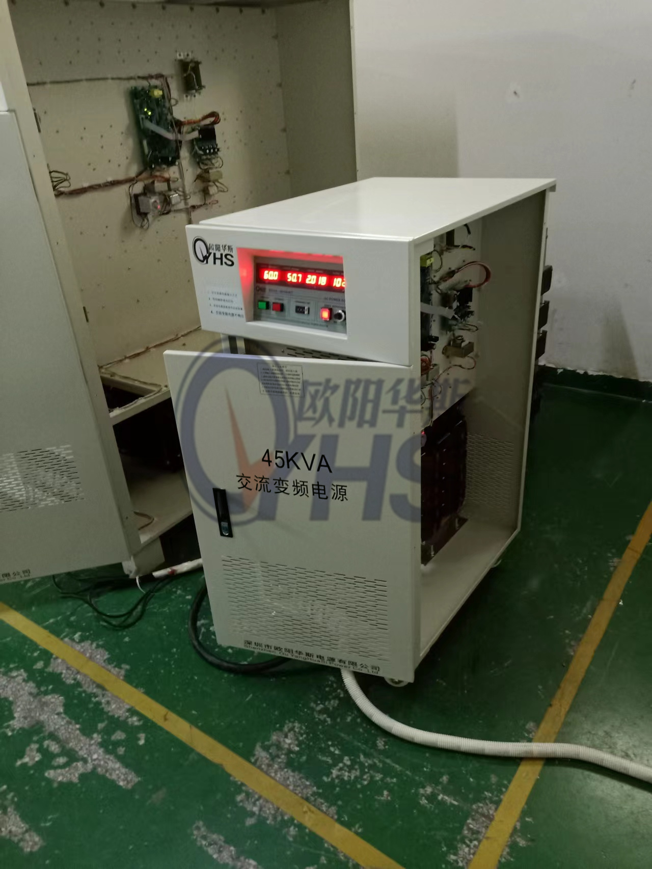 欧阳华斯45KVA变频电源出货浙江温州,输出110V 60HZ,220V 60HZ,测试出口小家电产品。