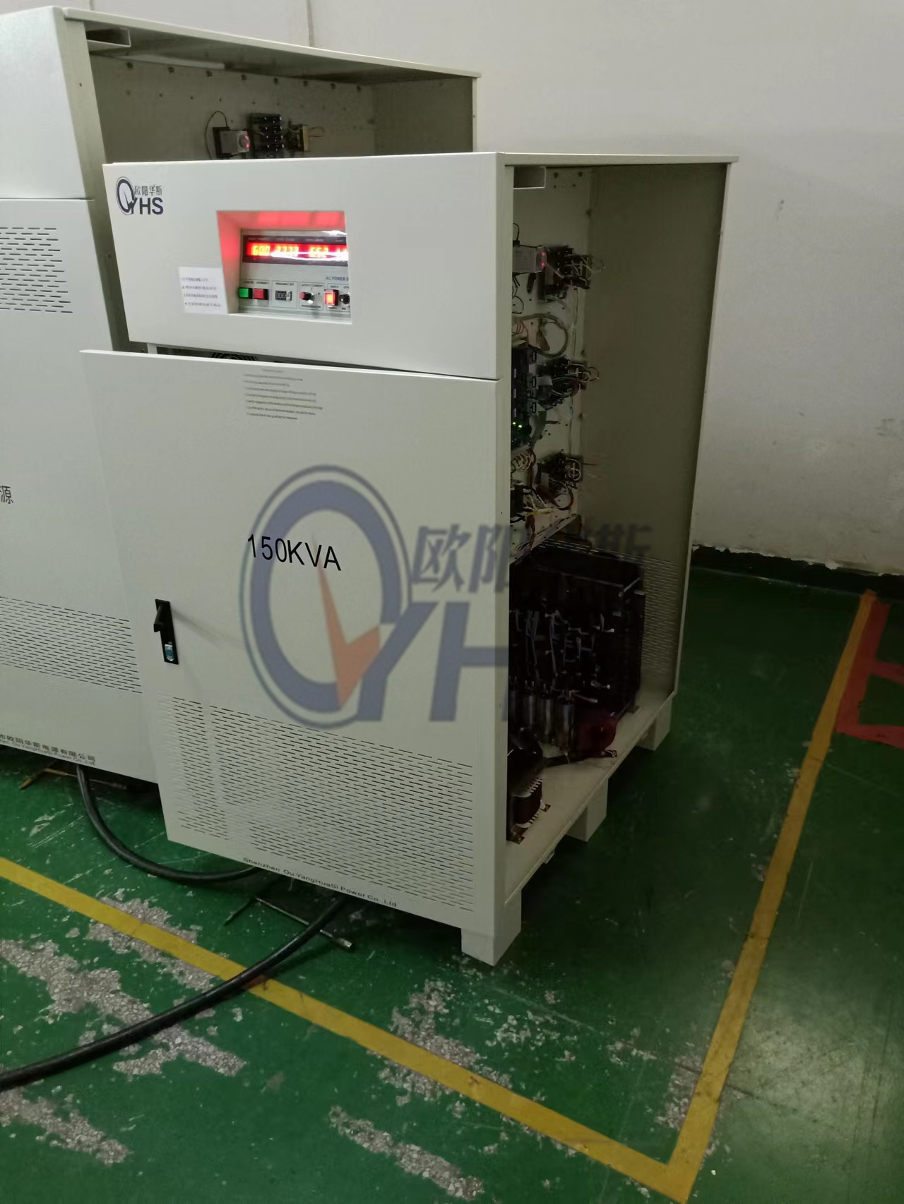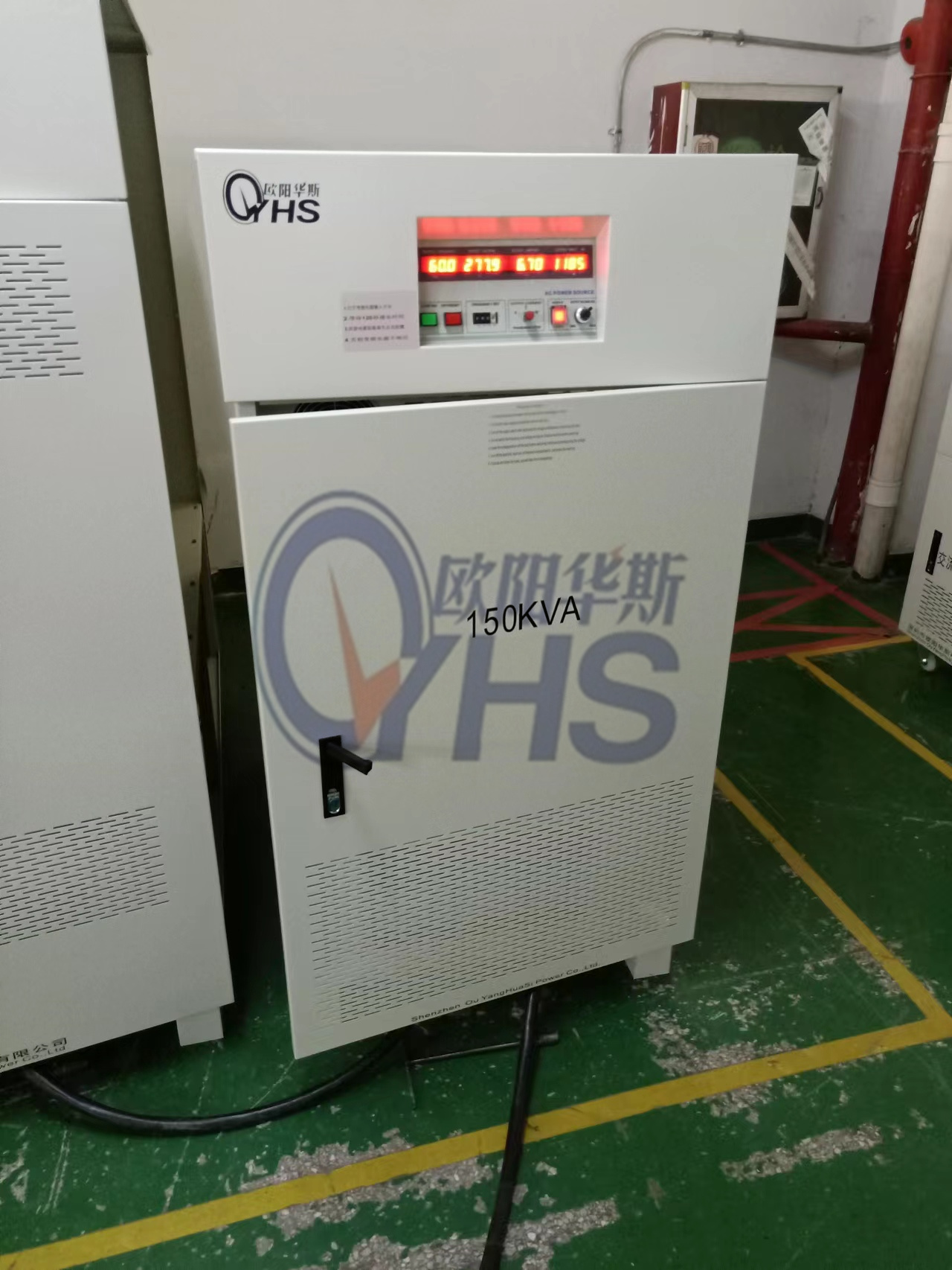 欧阳华斯三相150KVA变频电源出货美国,输入三相480V 60HZ,输出380V 50HZ,带国内设备使用。