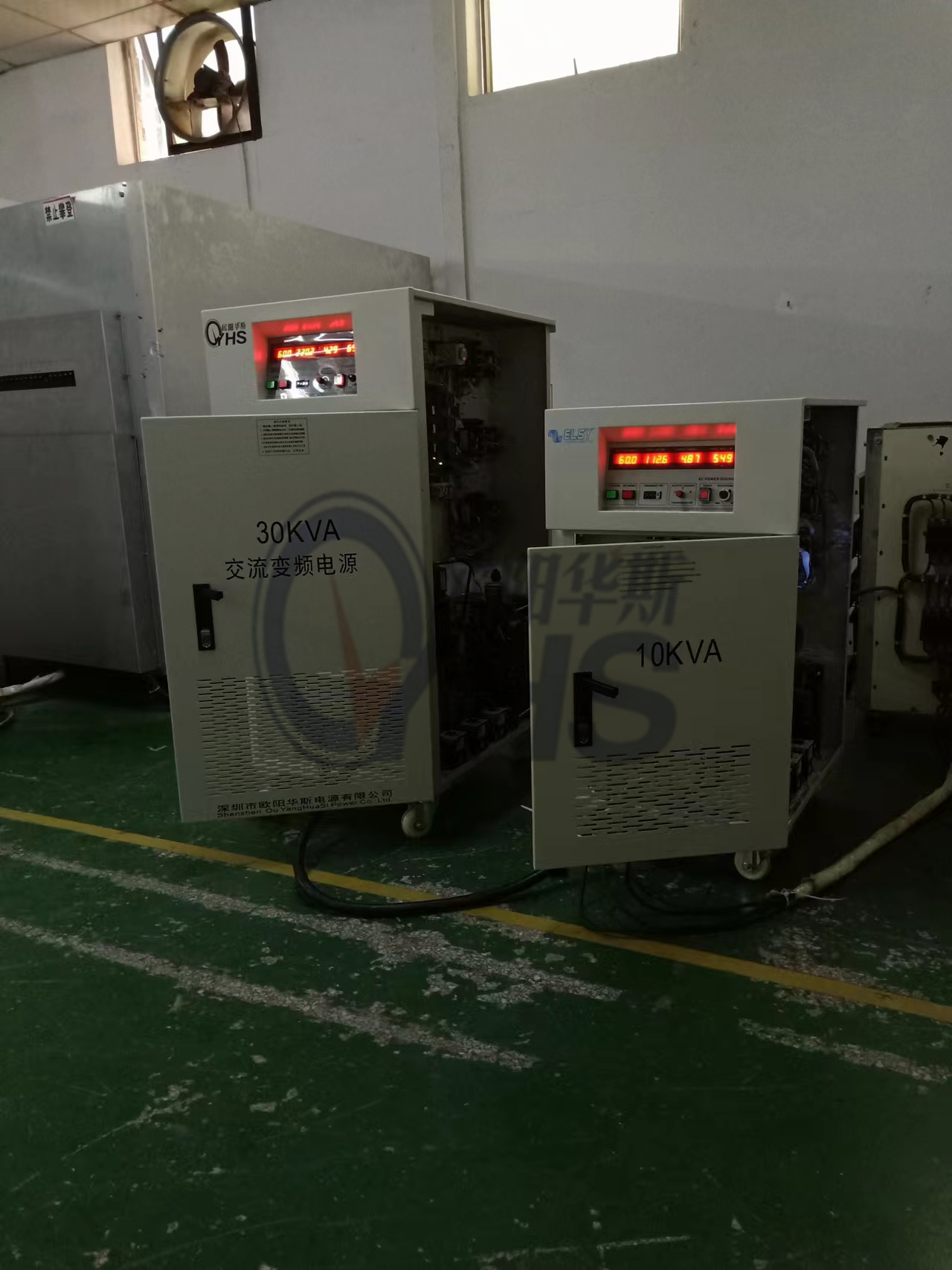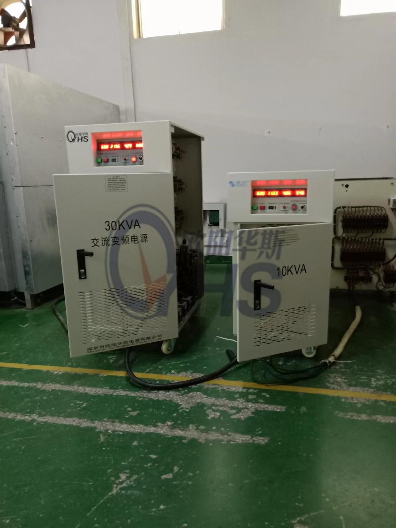 欧阳华斯三相30KVA变频电源出货东莞新能源客户现场,输出三相380V 60HZ,测试产品需求。