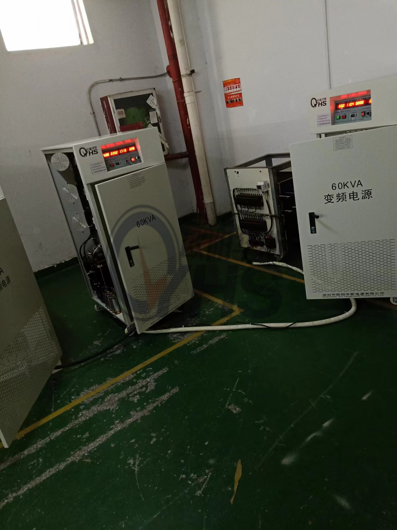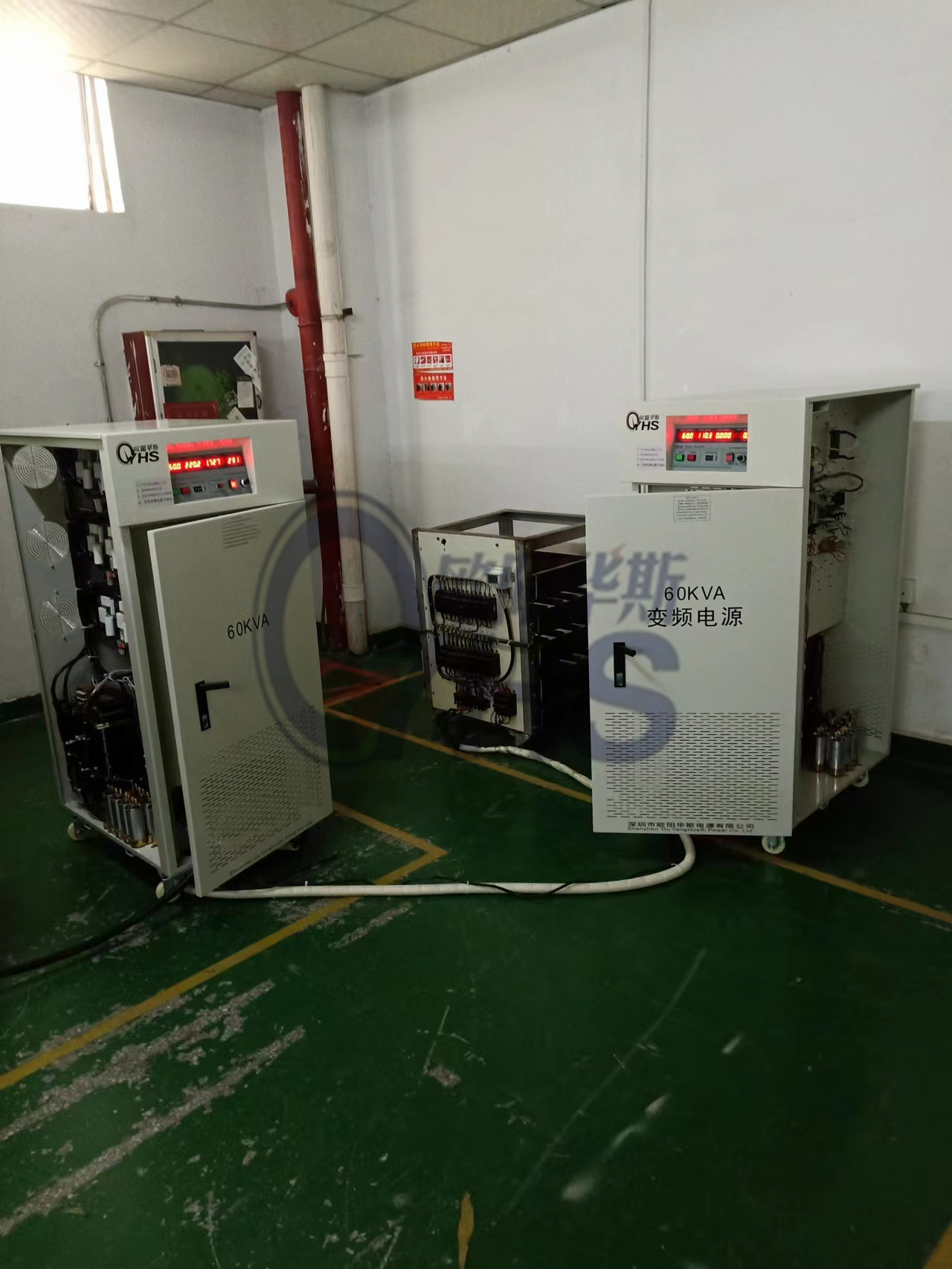 欧阳华斯三相60KVA变频电源出货美国,输入三相480V 60HZ,输出380V 50HZ,带国内设备使用。