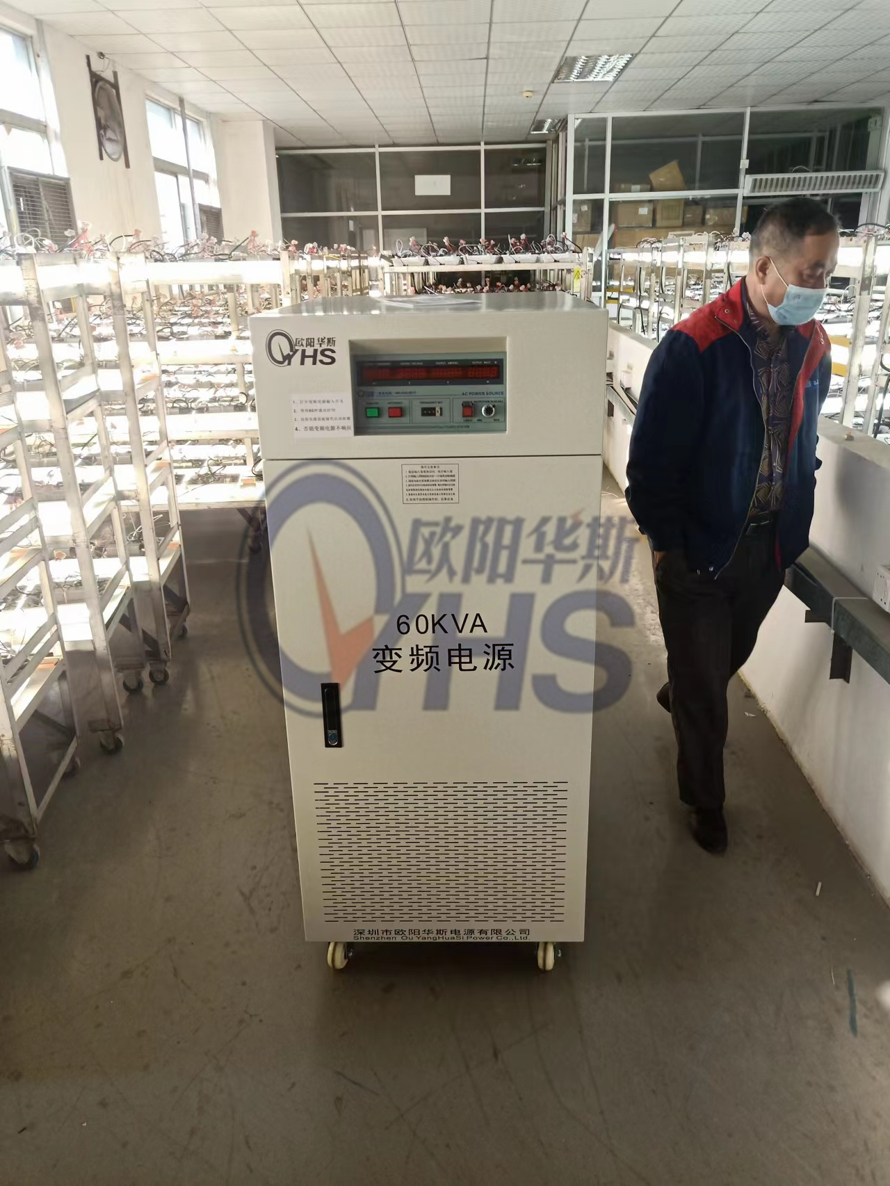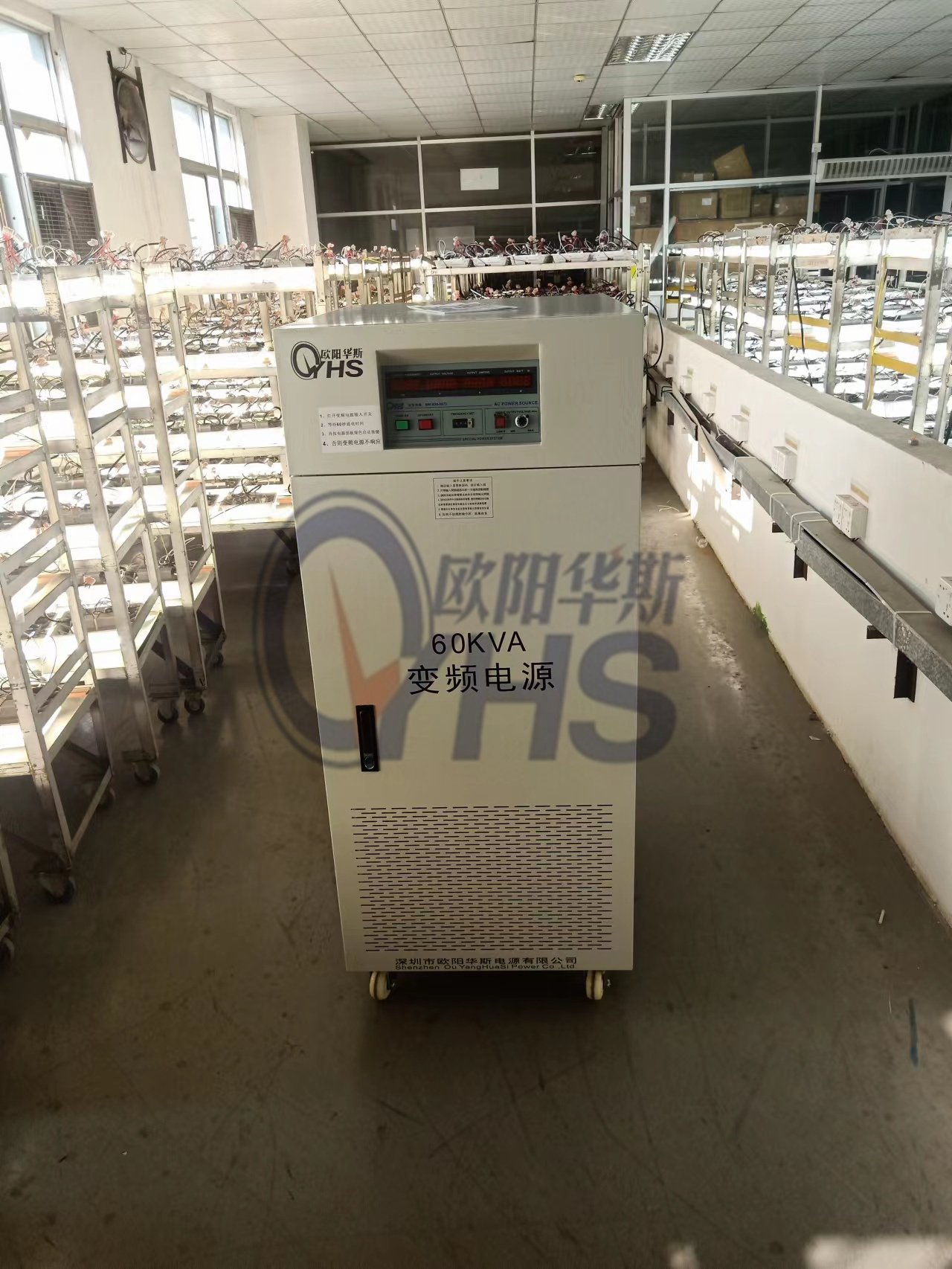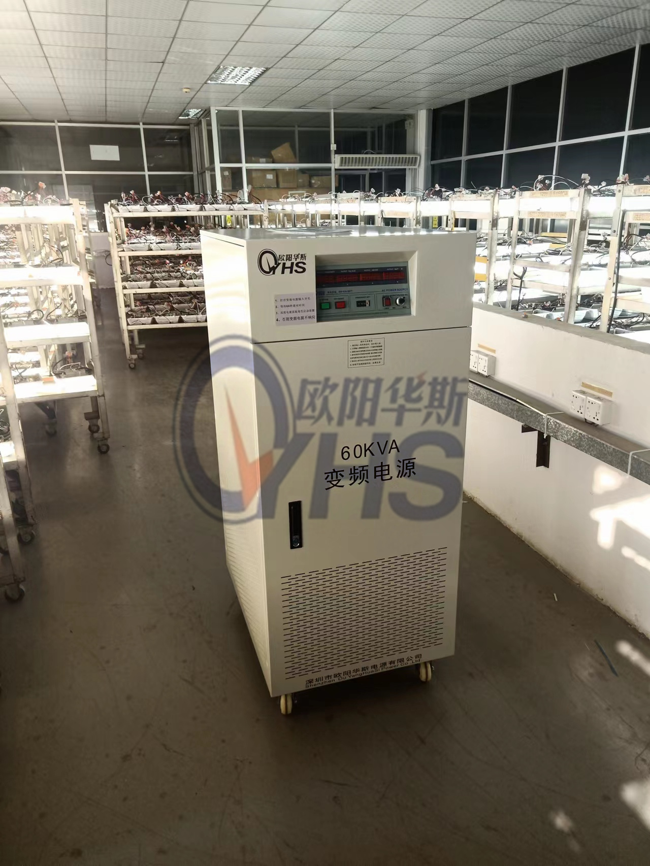 欧阳华斯60KVA变频电源出货东莞灯饰厂,测试出口产品,输出120V 60HZ。