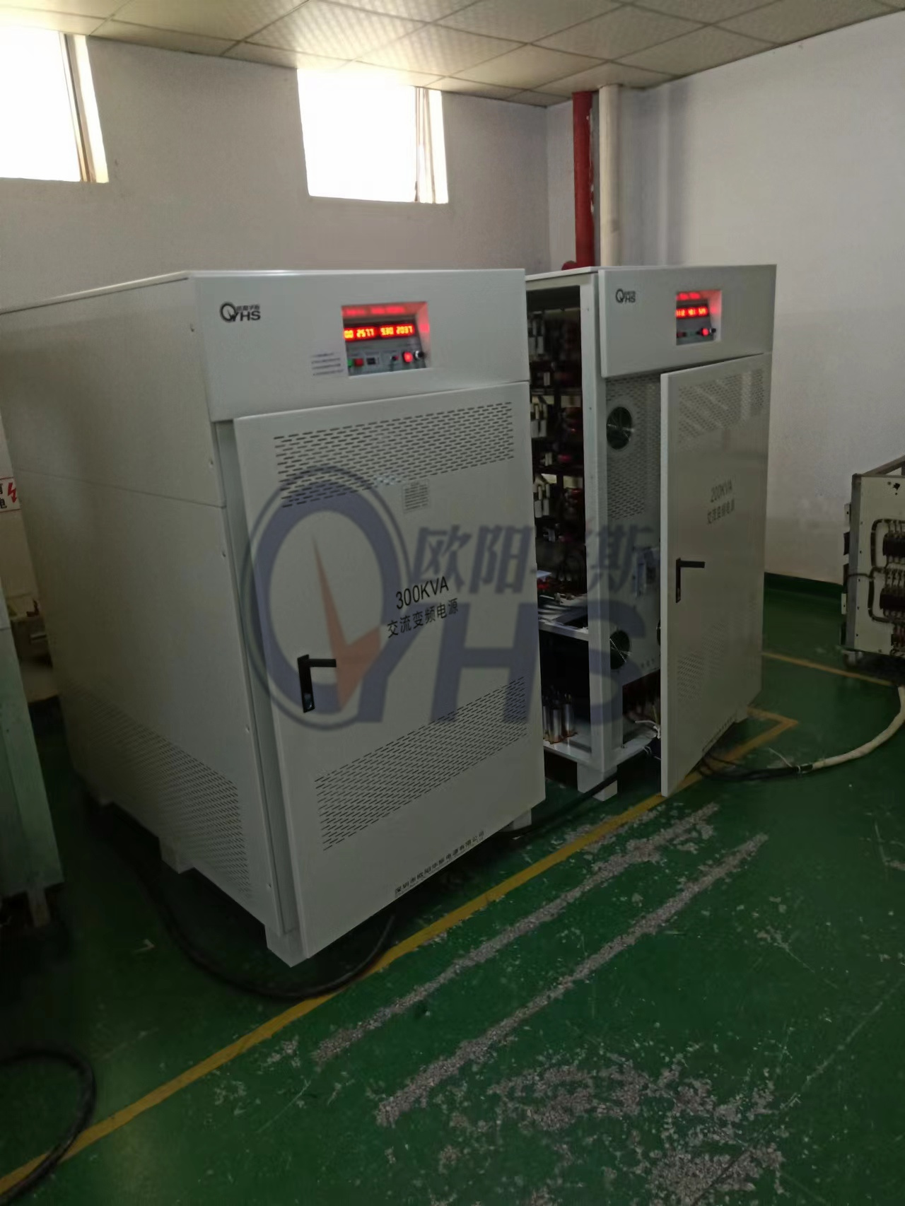 欧阳华斯三相300KVA变频电源出货惠州设备,测试出口设备,三相三相460V 60HZ。