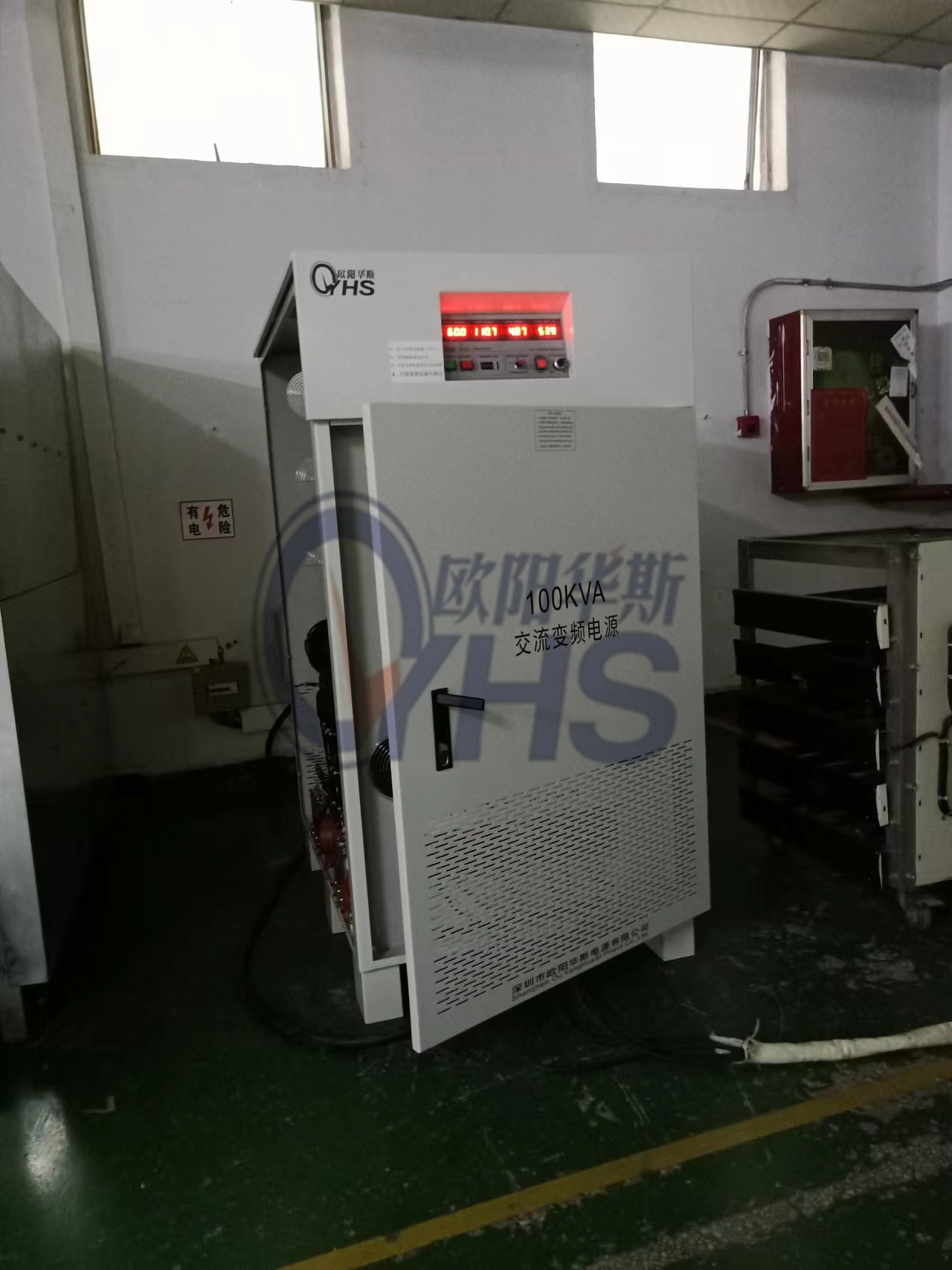 欧阳华斯三相100KVA变频电源出货浙江绍兴,输出110V,220V,60HZ。测试小家电产品。
