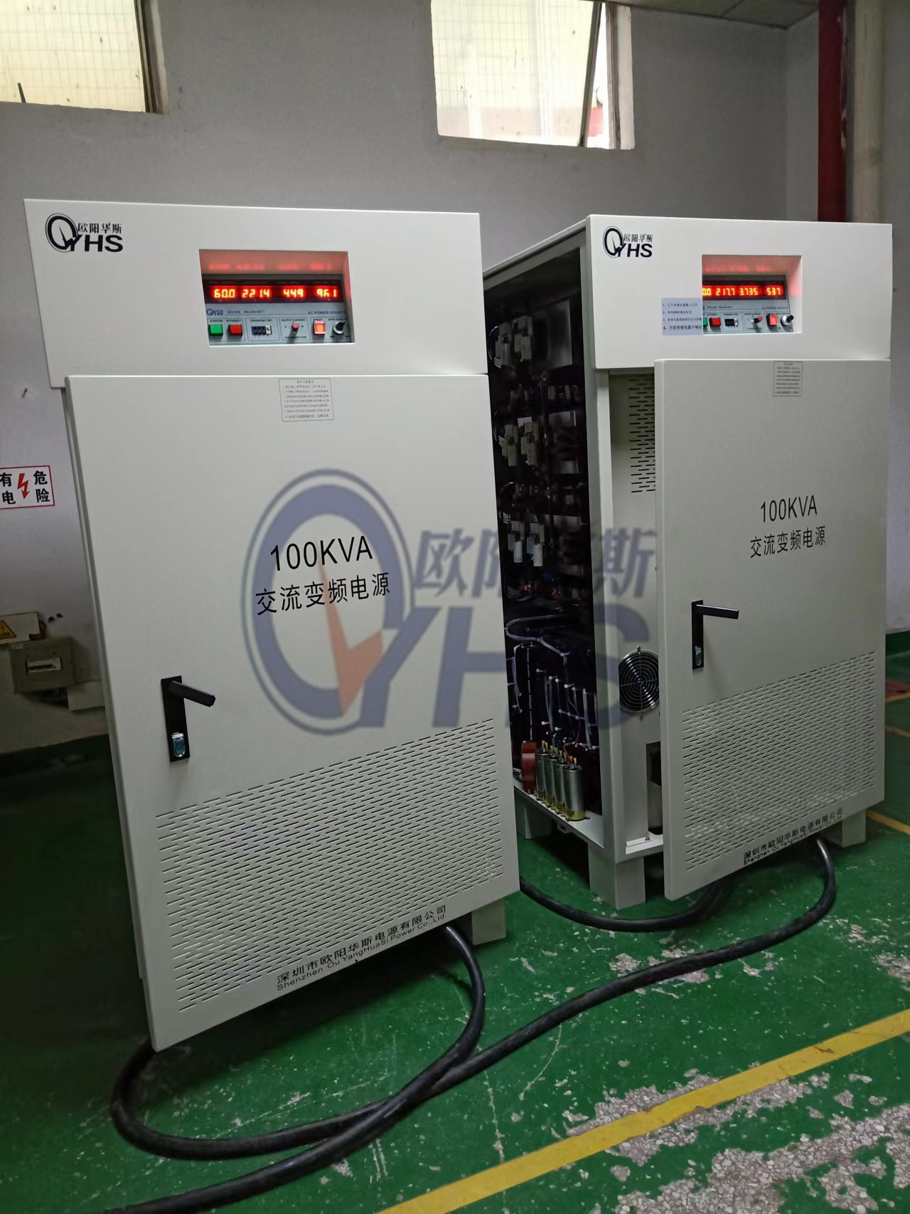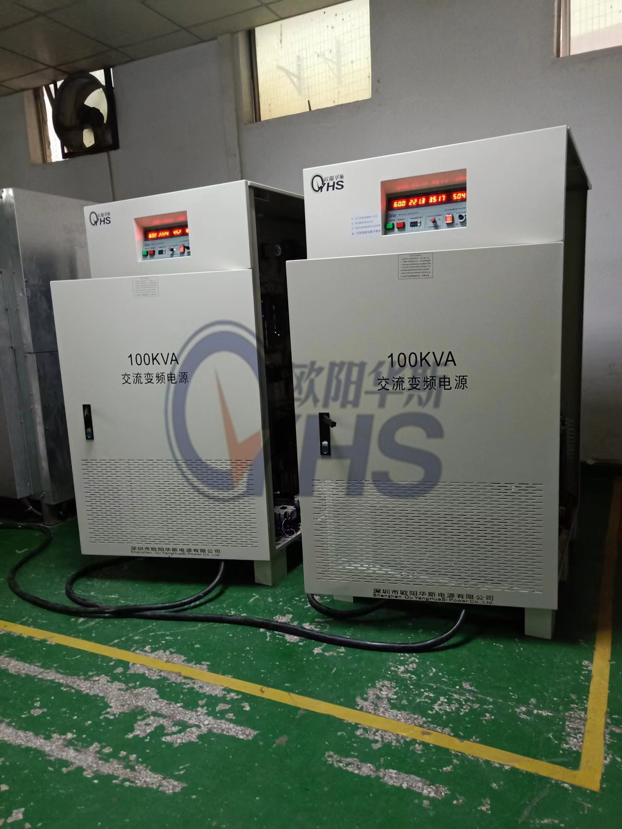 欧阳华斯三相100KVA变频电源出货,输出三相480V 60HZ,一台出货佛山南海,一台出货成都。