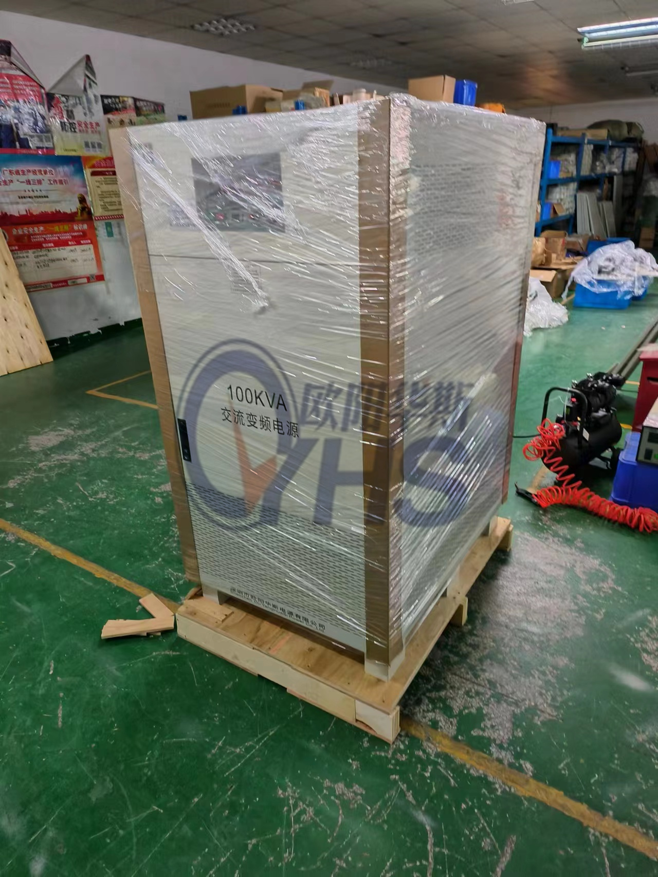 欧阳华斯三相100KVA变频电源出货美国,输入三相480V 60HZ,输出380V 50HZ。
