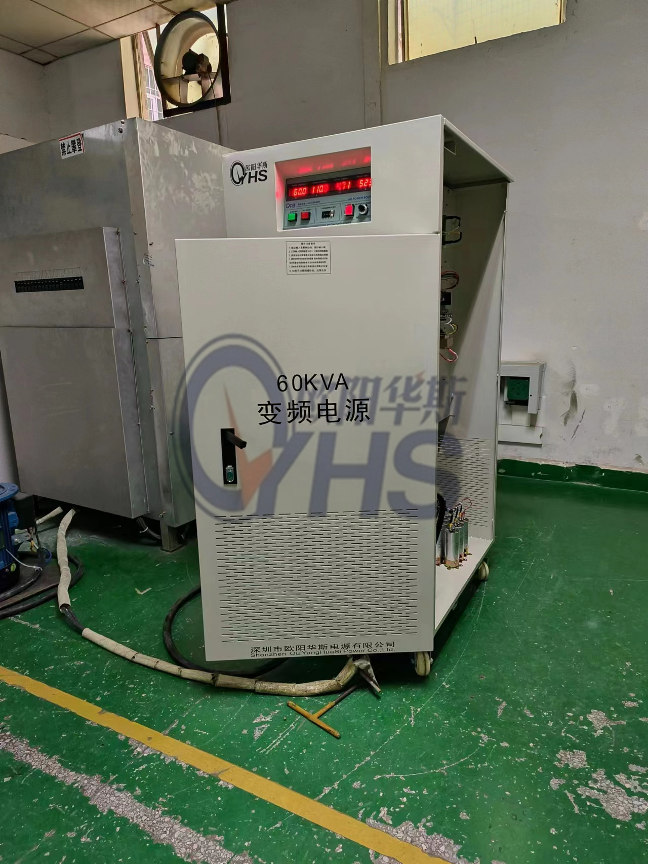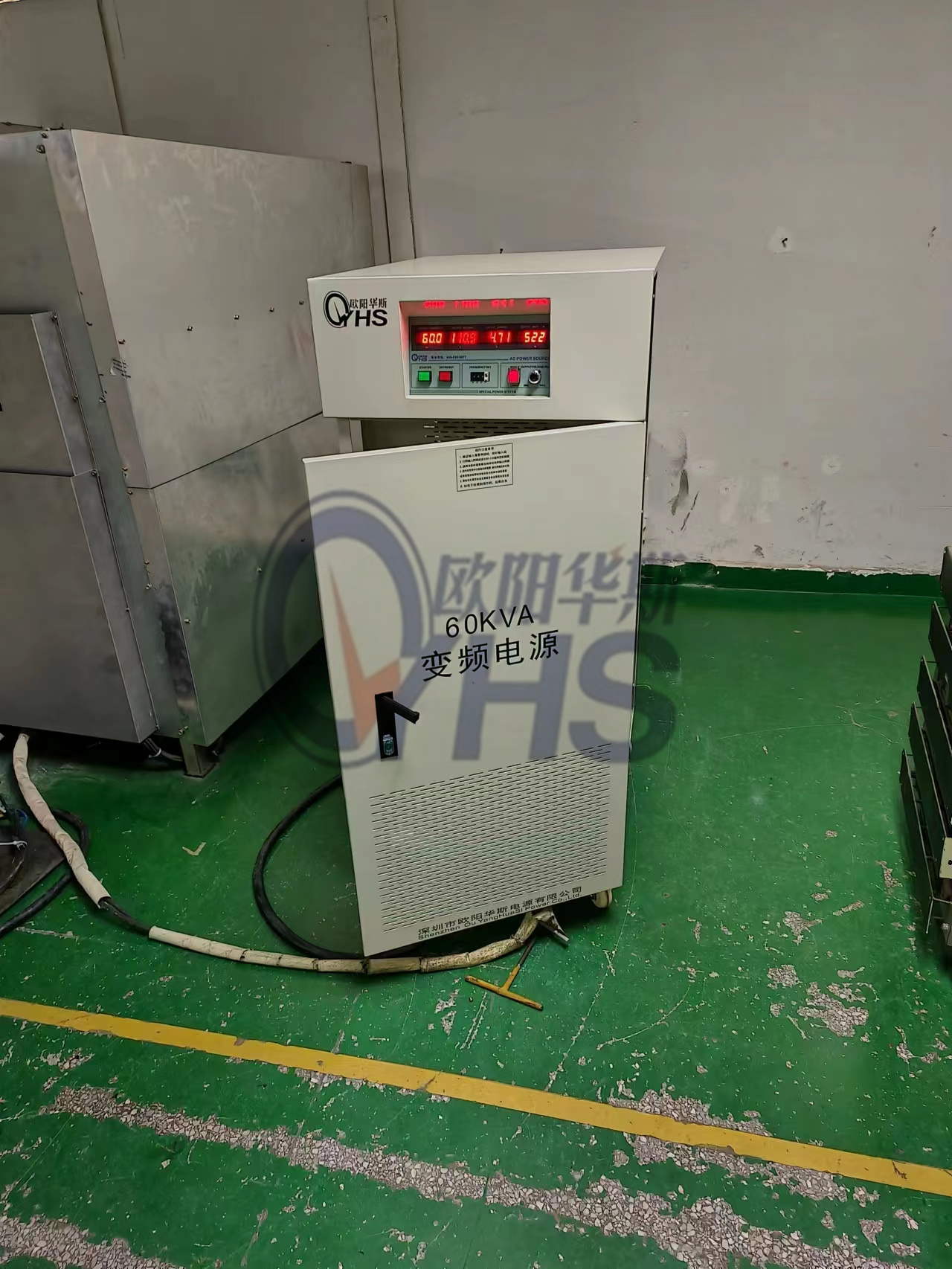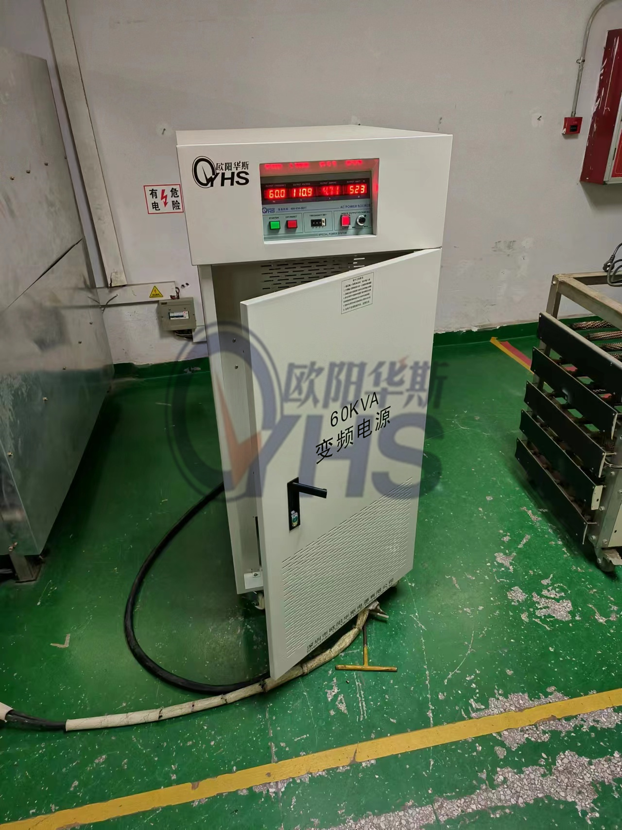 欧阳华斯60KVA变频电源,输出电压220V 60HZ,出货浙江宁波,测试老化小家电产品。