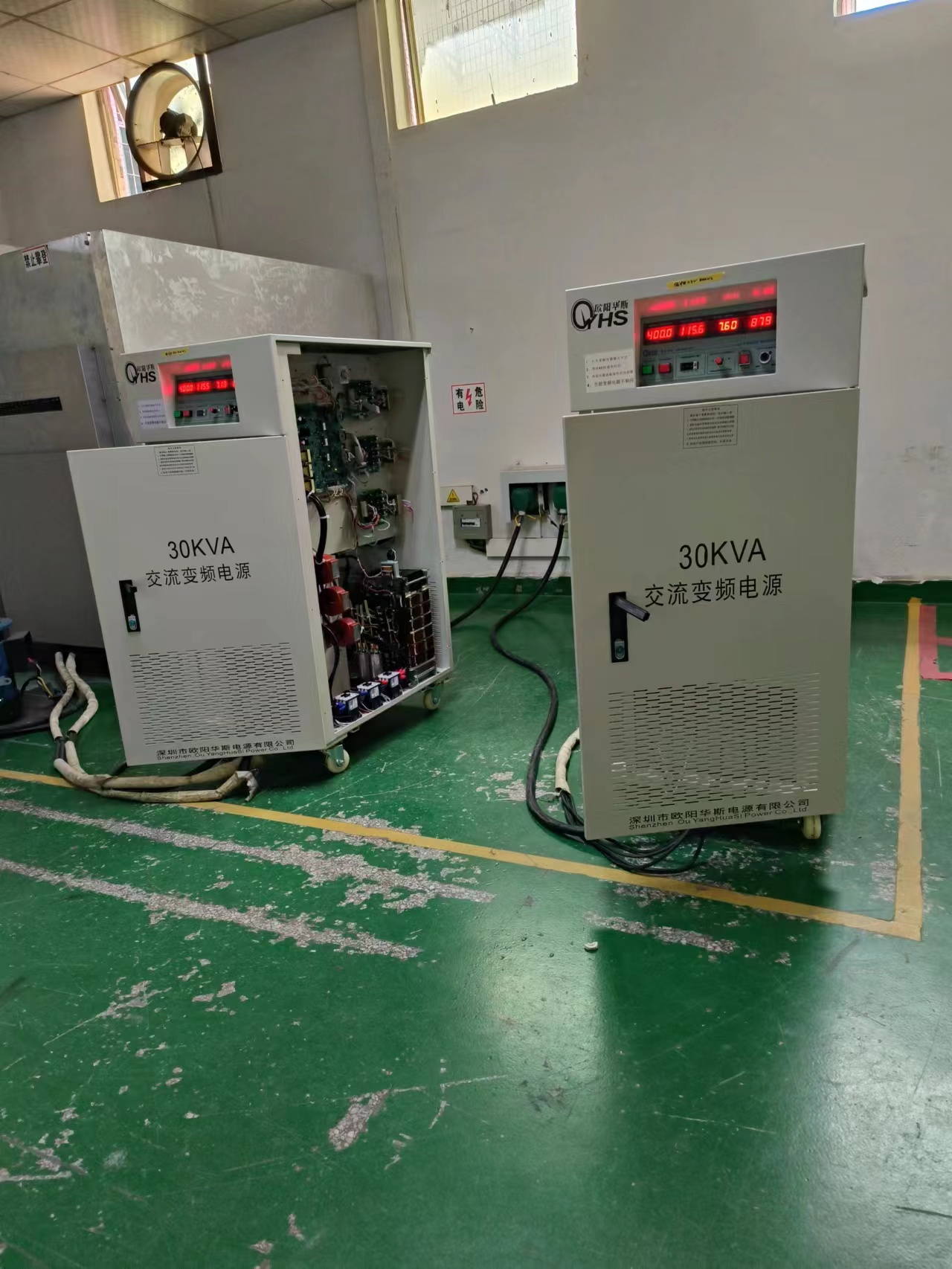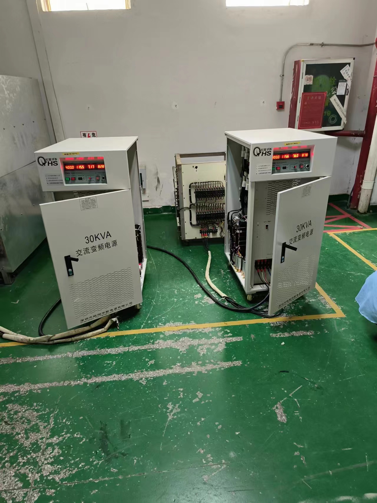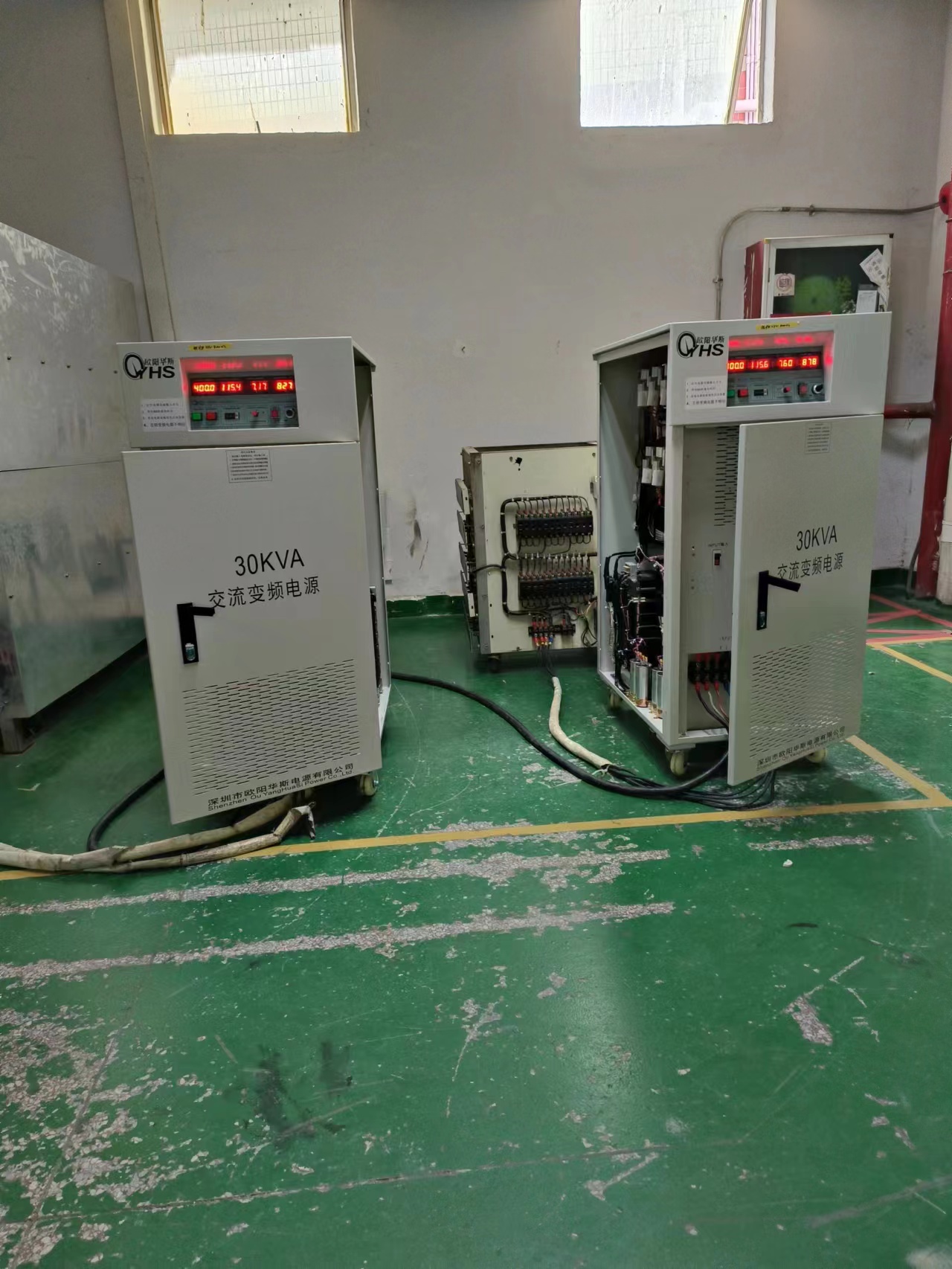 欧阳华斯30KVA变频电源出货深圳家电厂,输出100V 60HZ,测试出口日本暖风机