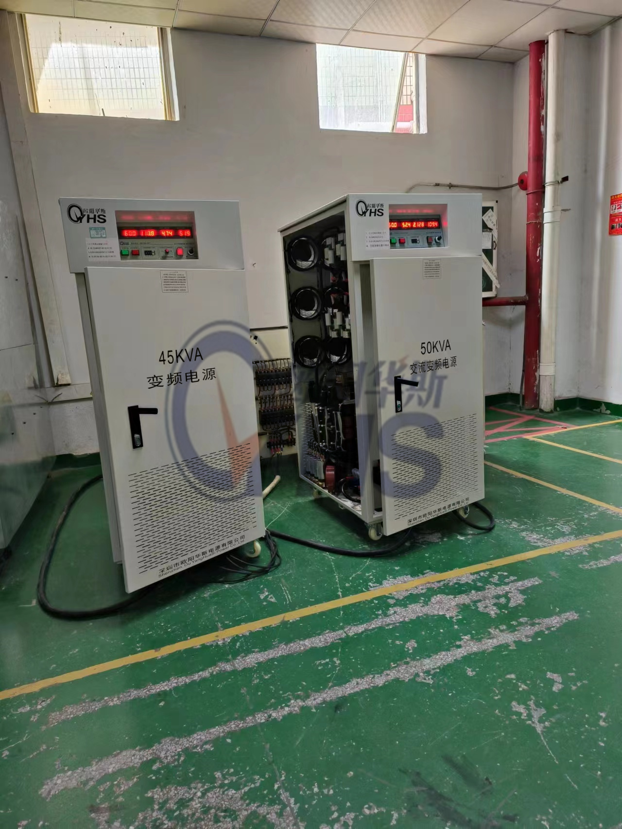 欧阳华斯50KVA变频电源出货广东佛山,输出电压0-650V连续可调,频率60HZ,50HZ可调。