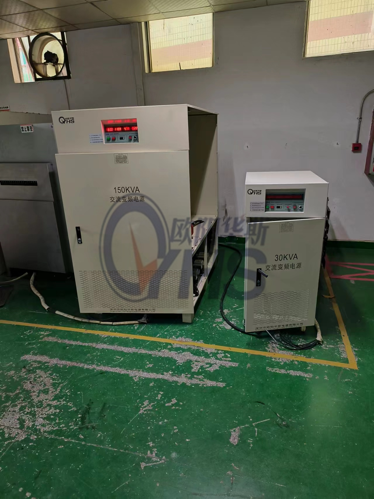 欧阳华斯150KVA变频电源出货东莞,输出120V 60HZ,测试出口吹风筒产品。