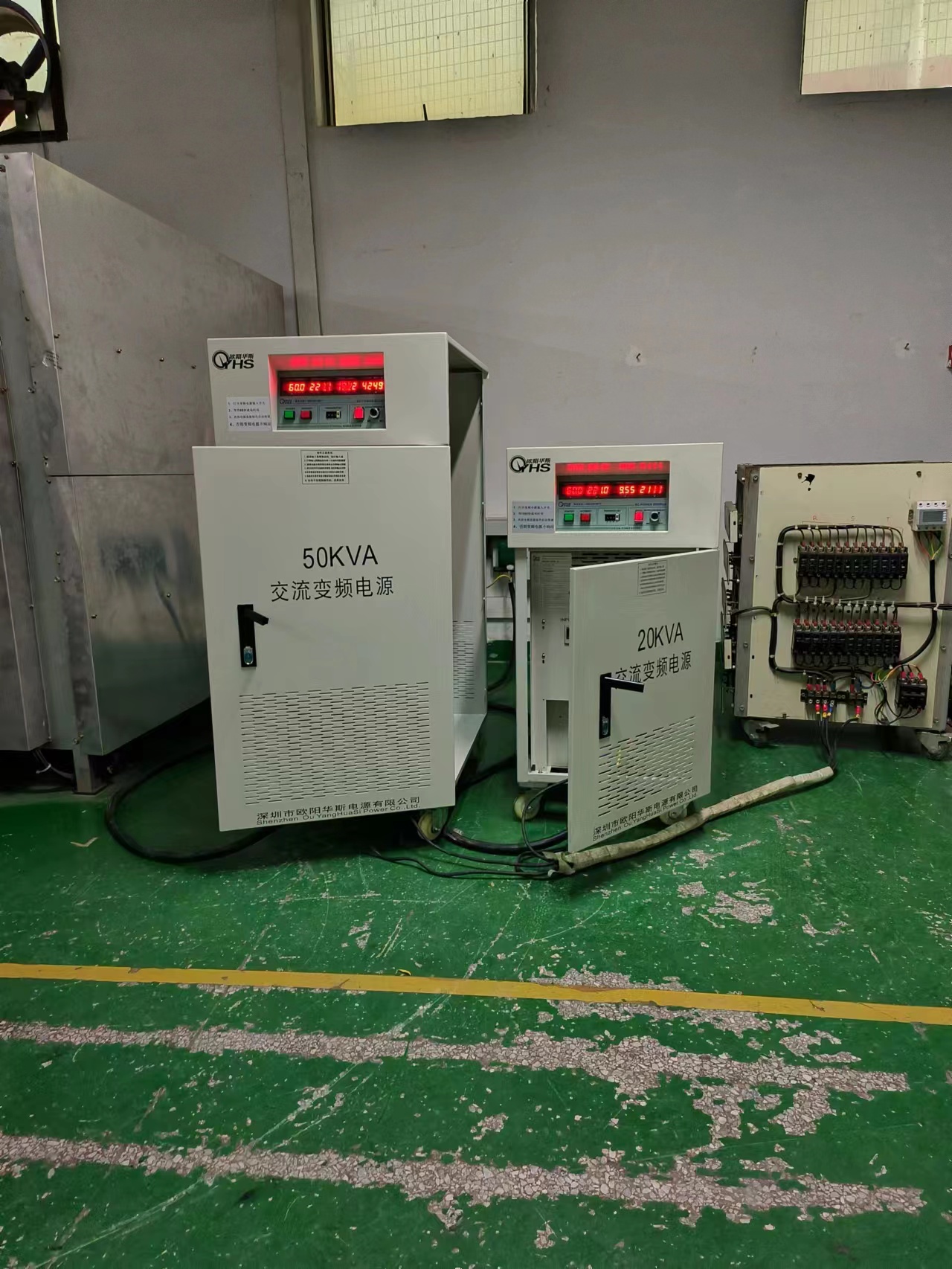 欧阳华斯50KVA变频电源出货东莞家电厂,输出120V 60HZ,测试出口小家电产品。