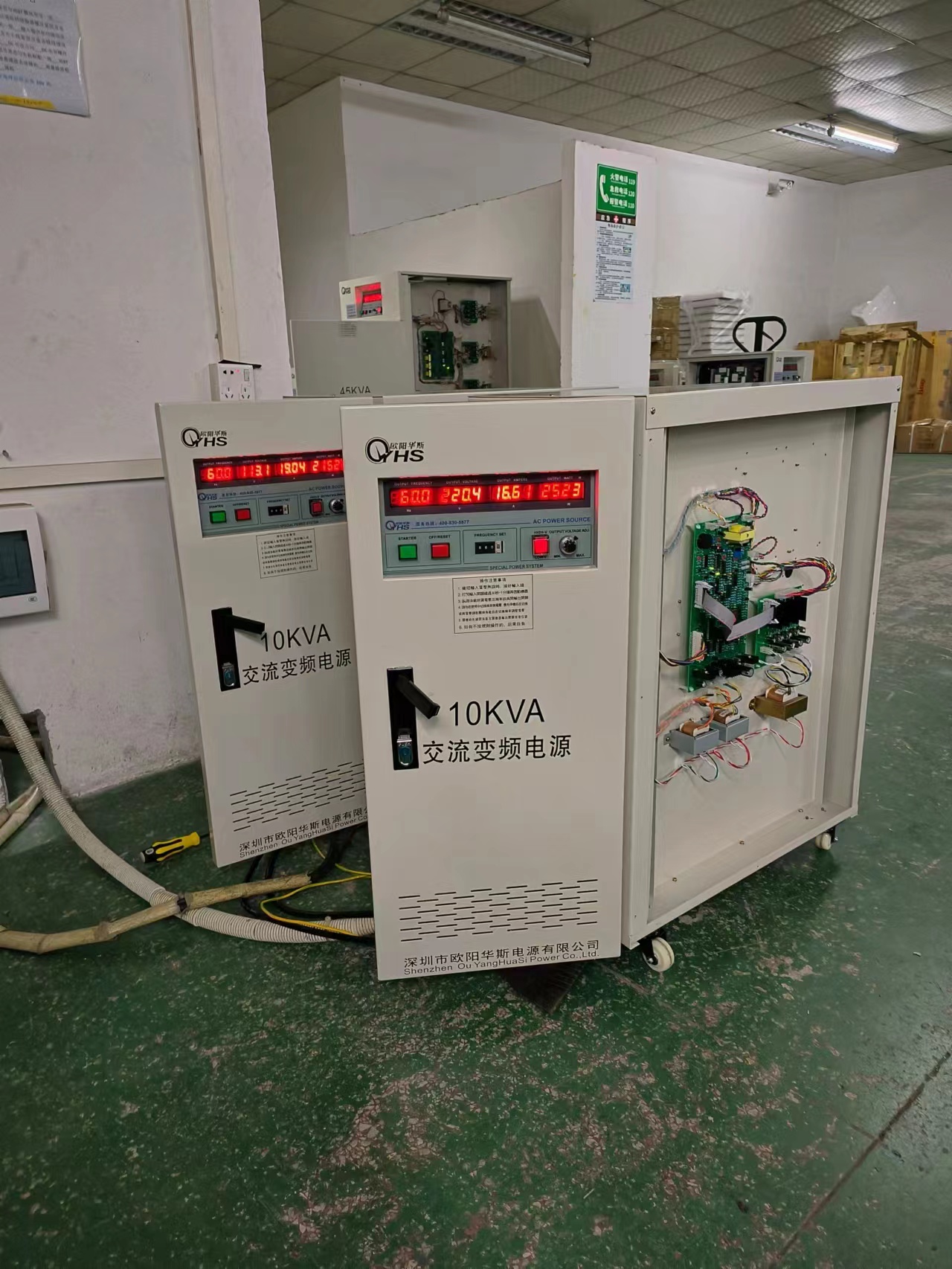 欧阳华斯10KVA变频电源出货印尼,输出120V 60HZ,测试出口树灯产品。
