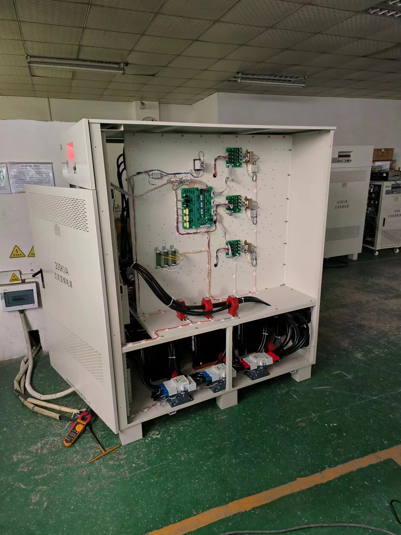 欧阳华斯三相200KVA变频电源出货,输出480V 60HZ,测试出口设备使用。