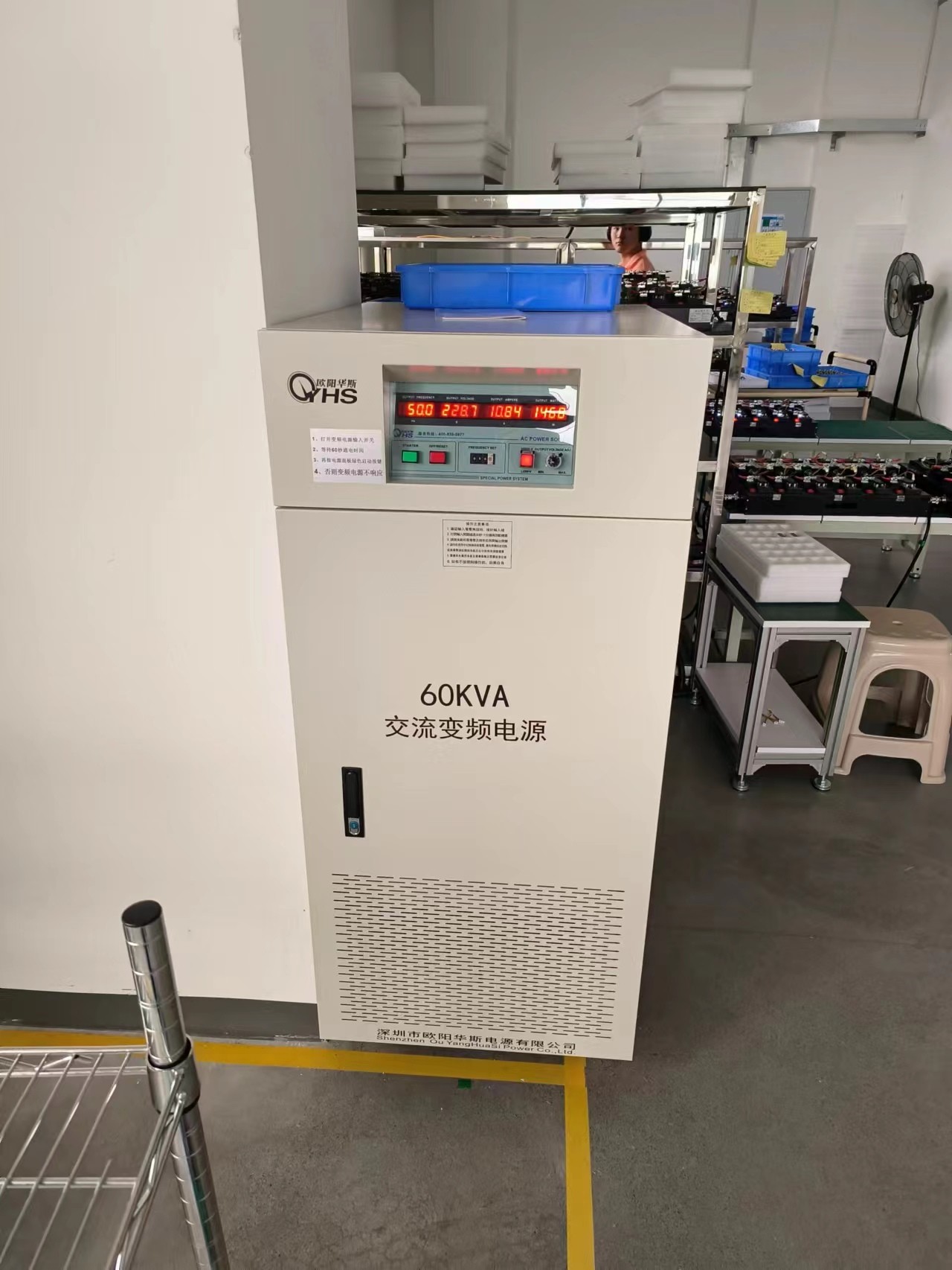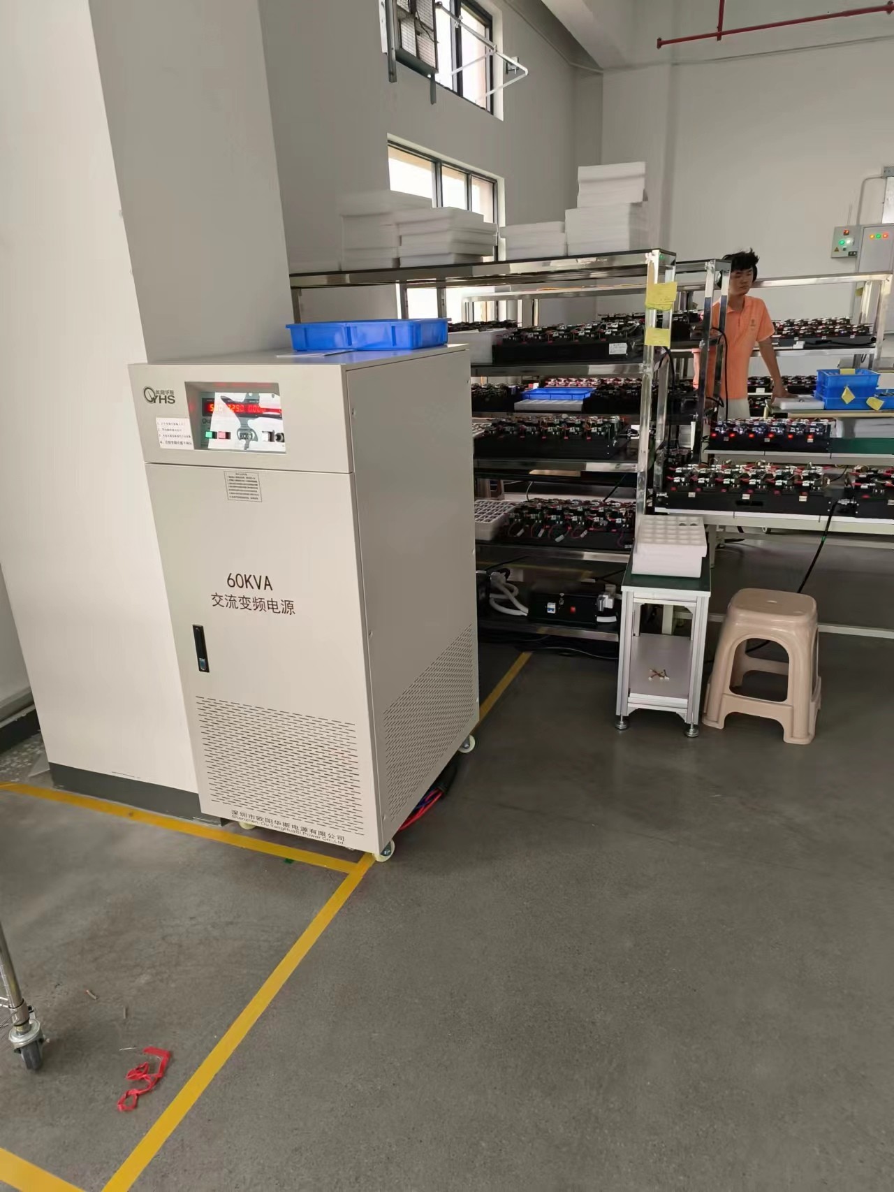 欧阳华斯60KVA变频电源出货佛山顺德,输出220V 50HZ,测试老化吹风筒马达。