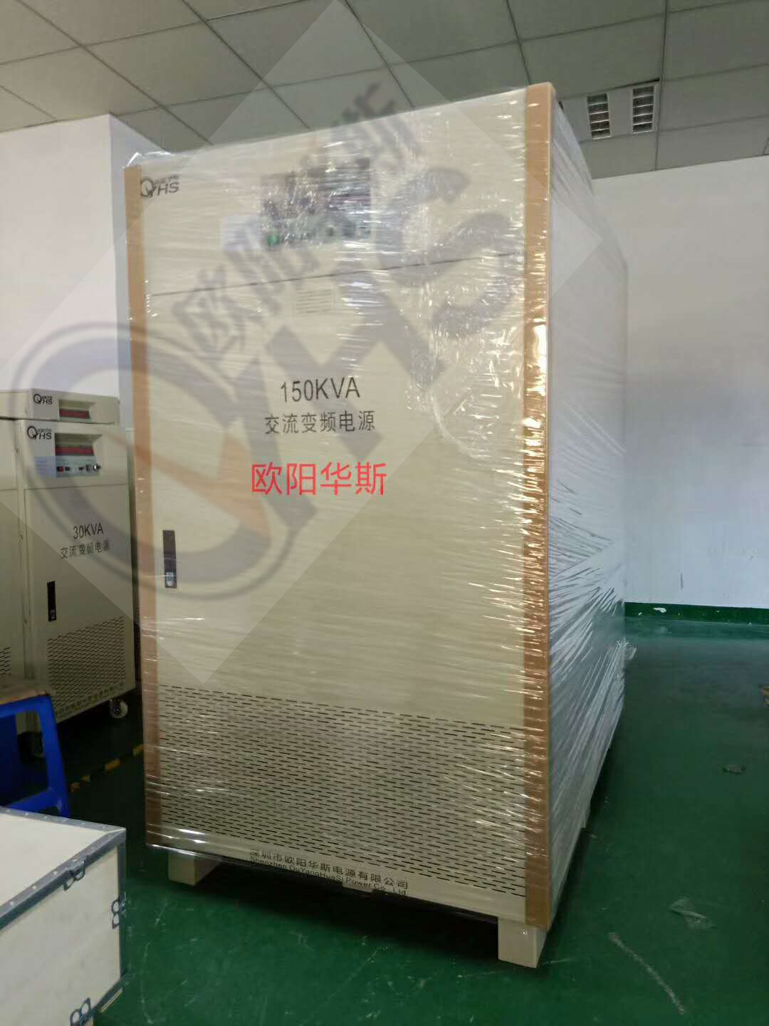 一台三进三出150KVA变频电源出货发往外地漳州市,此台电源为三进三出,功率150KVA,型号OYHS-983150,输入电压380V±10%,输入频率:50HZ or 60HZ±10%,输出电压:低档电压0-260V,高档电压0-520V,输出频率:60HZ,50HZ,40-499.9HZ 连续可调。所有功能检测OK,已打包发往外地。现场图