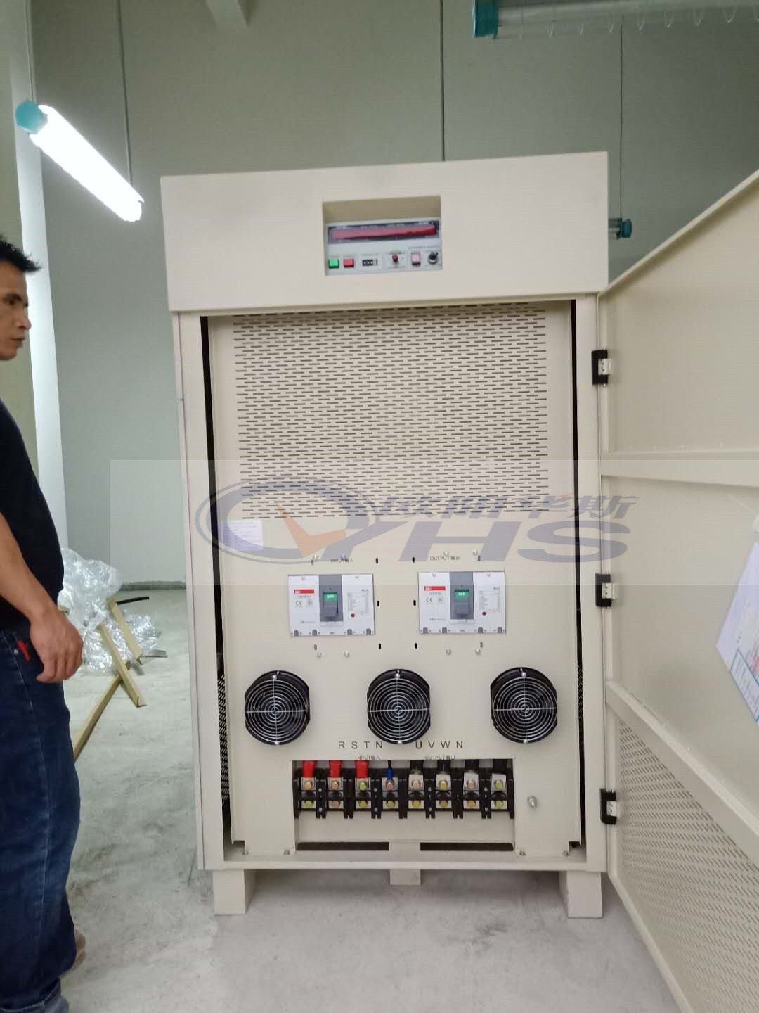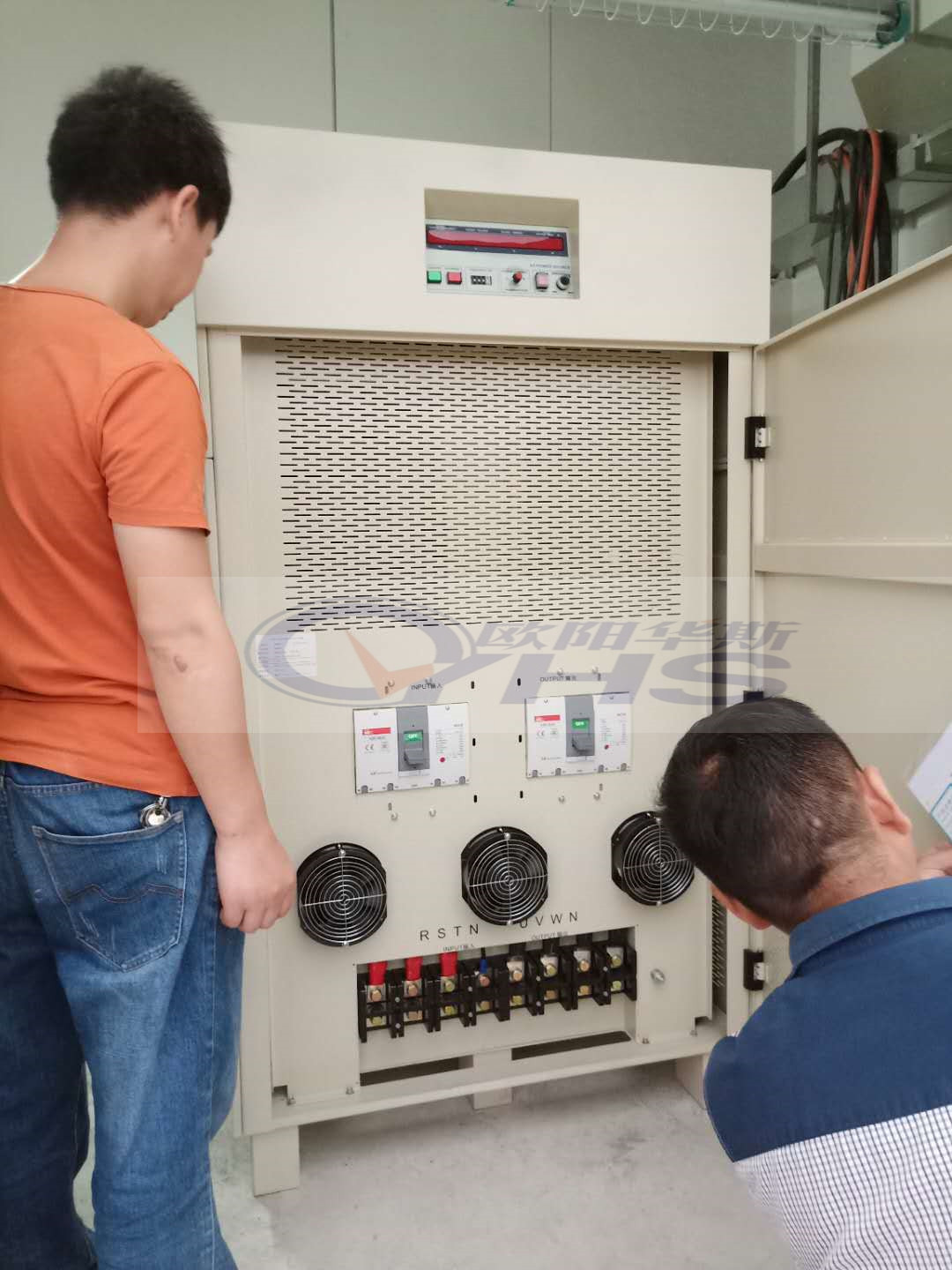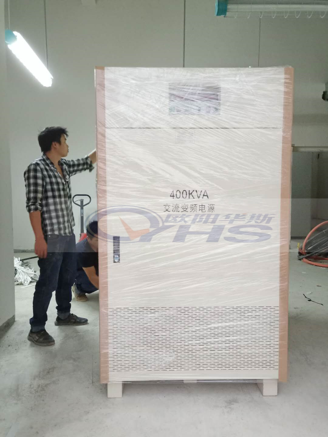 三相400KVA变频电源哪家好?欧阳华斯变频电源是你第一选择品牌,图为客户订购三相400KVA变频电源装机现场,带测试设备。