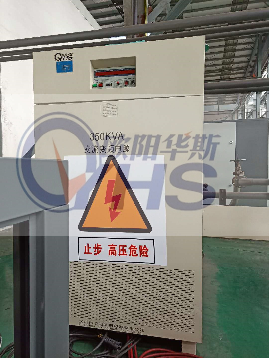 欧阳华斯出货三相350KVA大功率变频电源,客户测试大型电机,马达,测试60HZ。多路输出,方便客户接线。