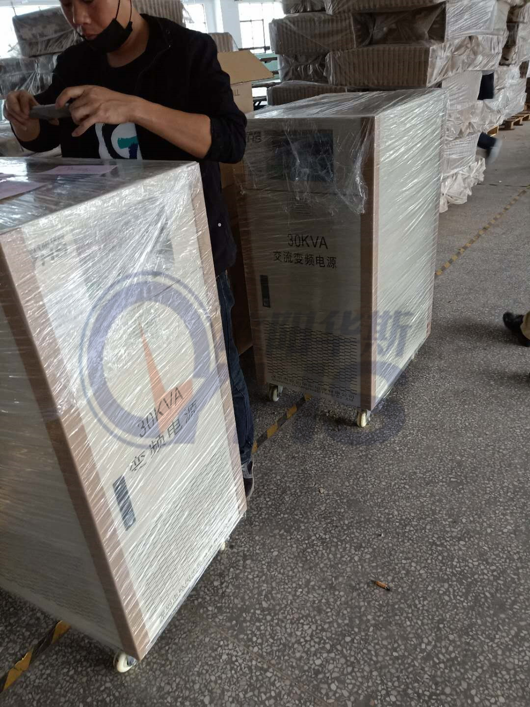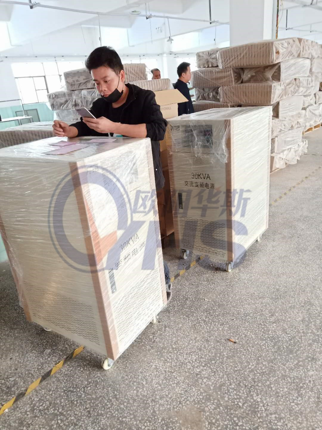 欧阳华斯送货二台30KVA变频电源到东莞清溪客户现场,客户是老化美容美发产品,测试120V 60HZ